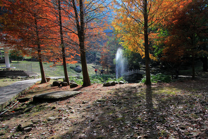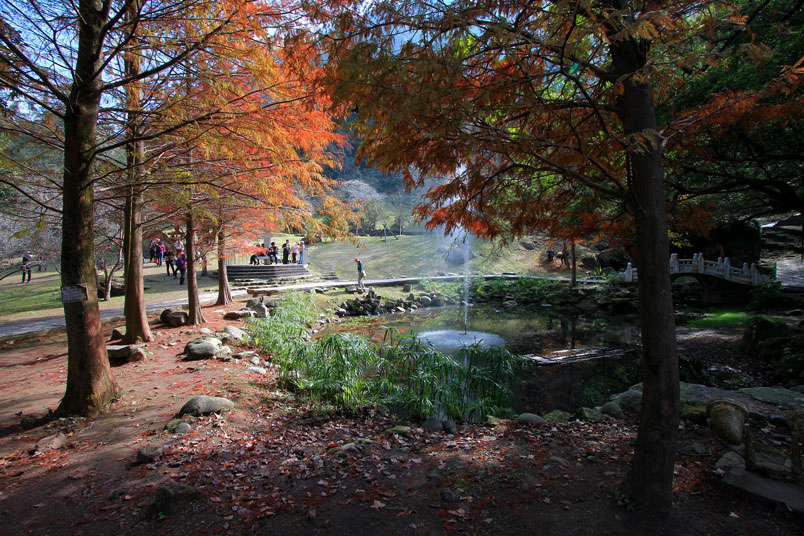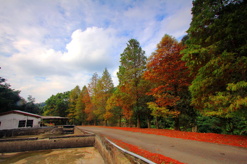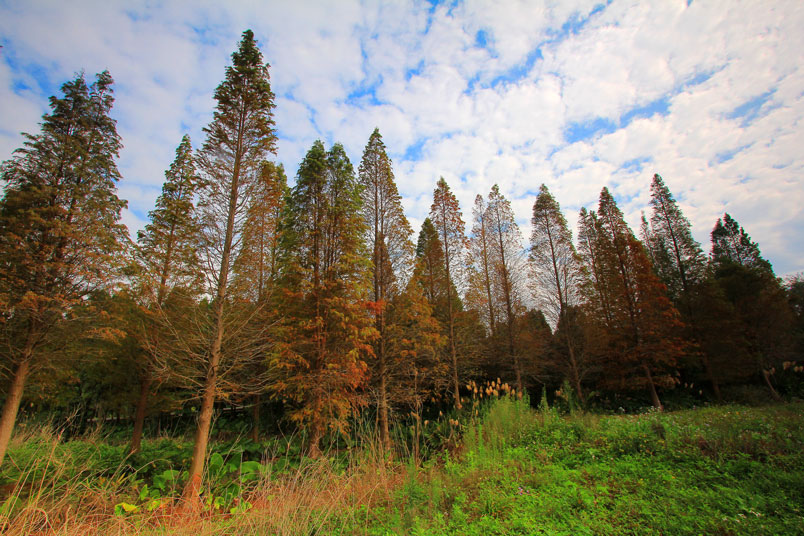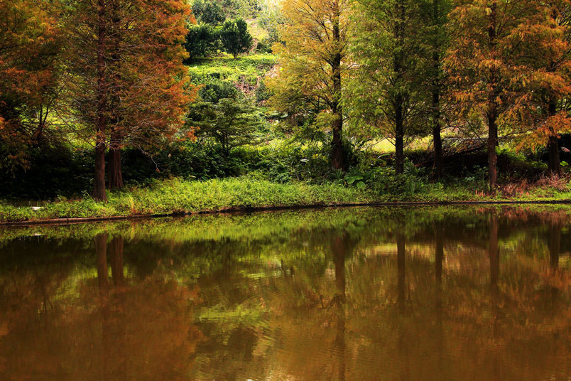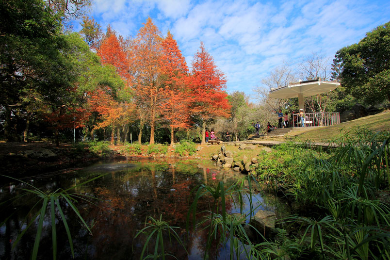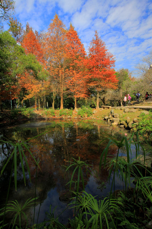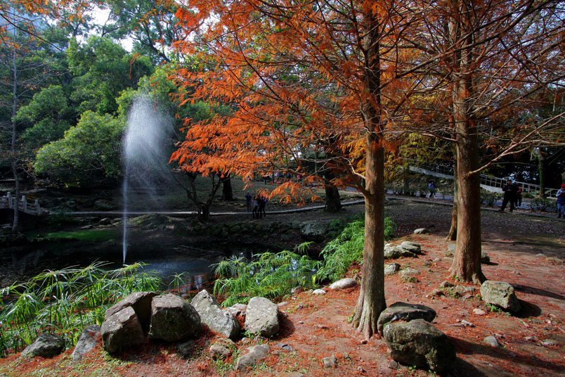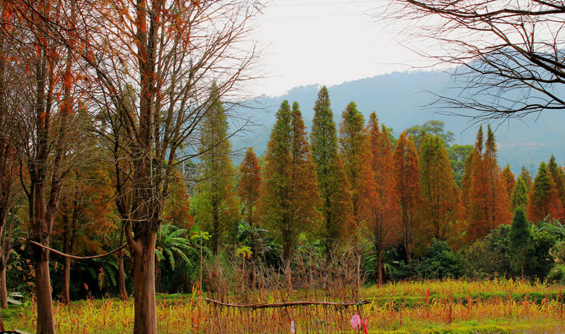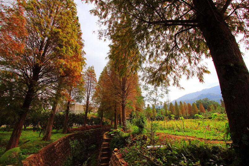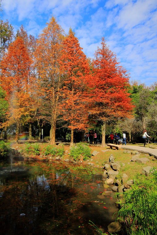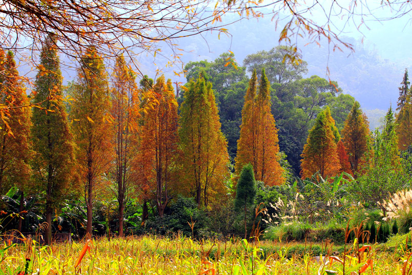 由綠轉黃、從橘到紅的落羽松,同樣能創造北國深秋般