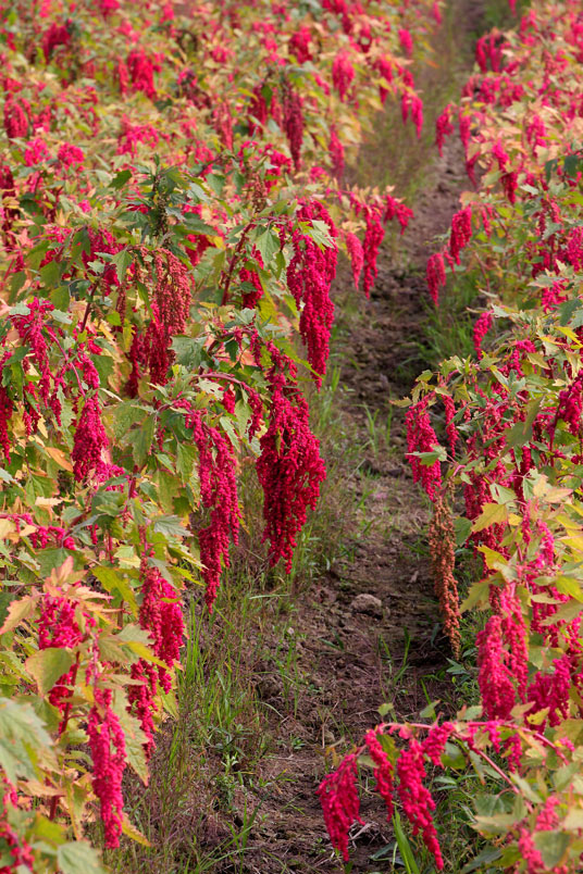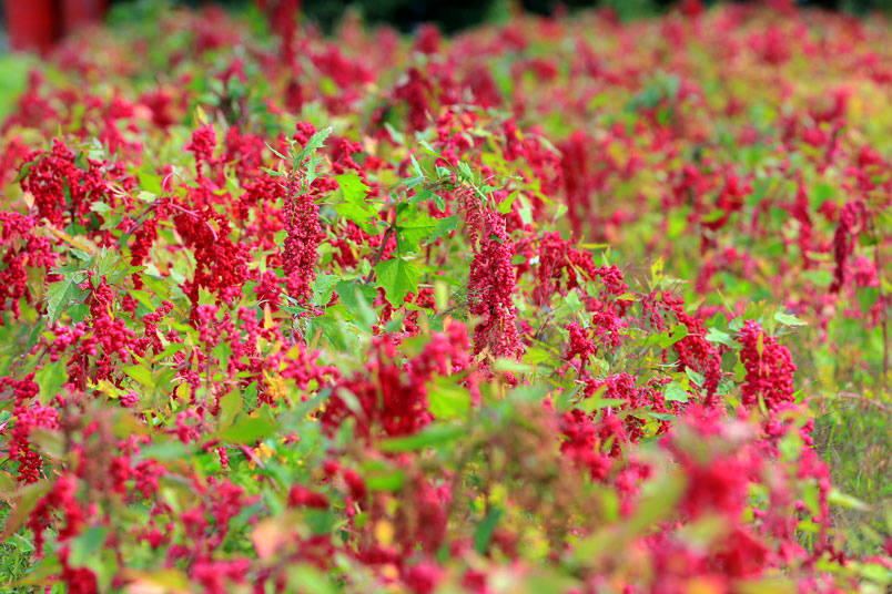 艷紅色的紅藜與南美洲藜麥有近親關係,早期做為酒麴原