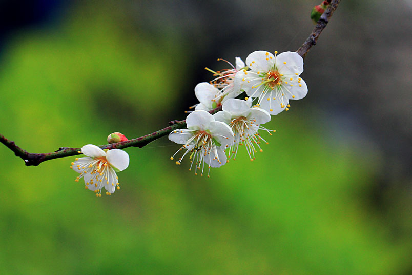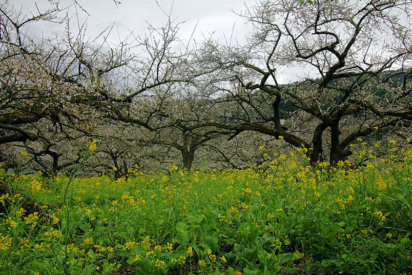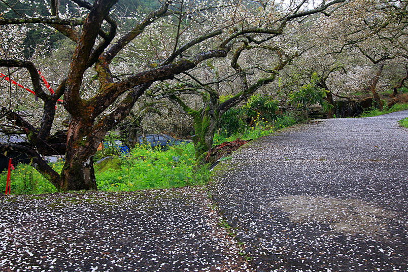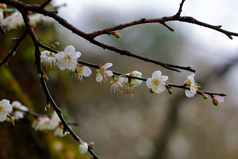 三成了,見不到梅雪覆蓋山頭的盛況,僅能在雨中享受尋