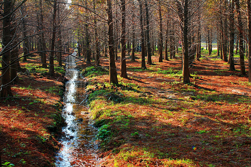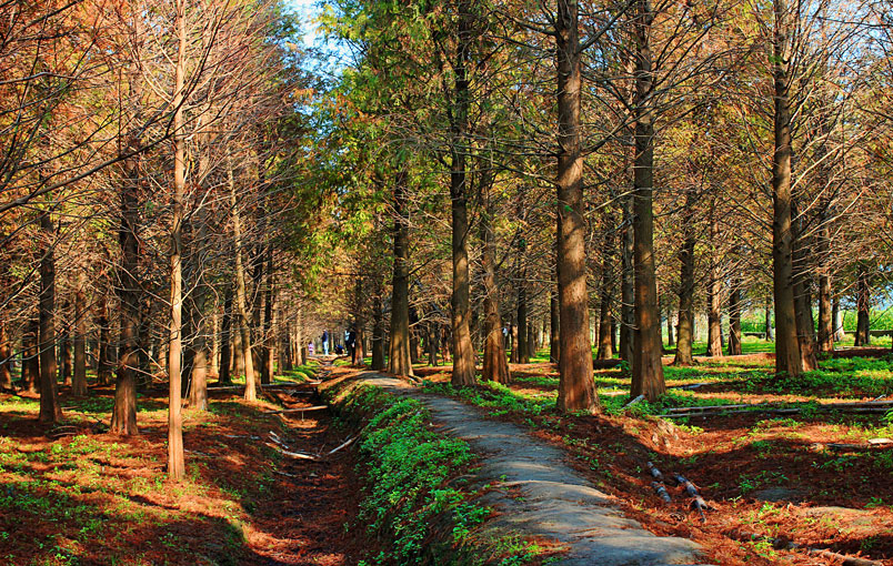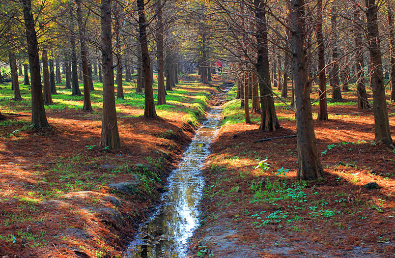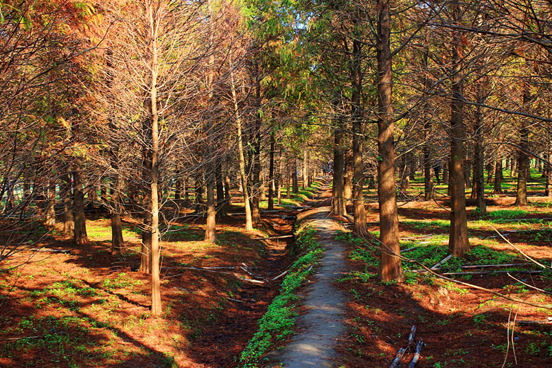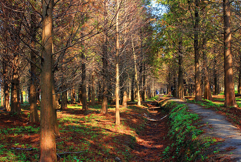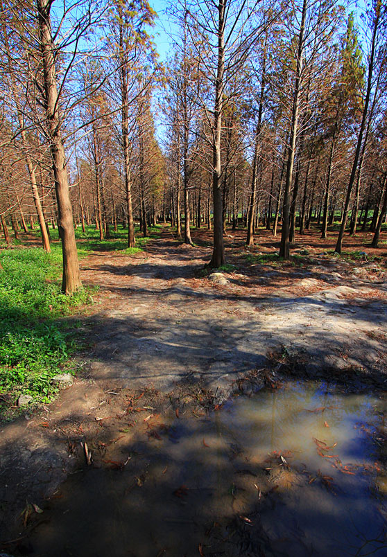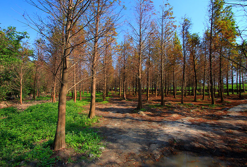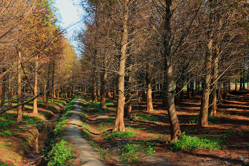 子去霄裡買黑米時順便拍下的晴天版落羽松來療癒,不然照