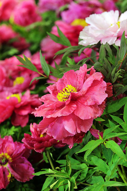 牡丹薄如蟬翼的花瓣,有單瓣、重瓣、多重瓣(千層),花型又