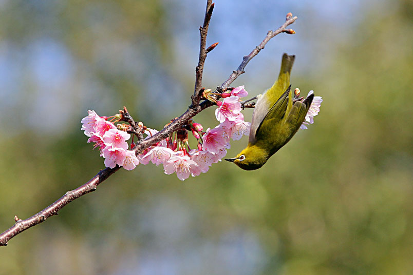 綠繡眼嘰嘰喳喳快樂地歌唱,一邊吸蜜還一邊玩遊戲,輕盈穿