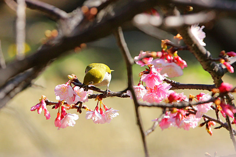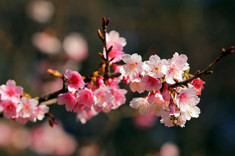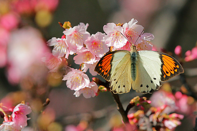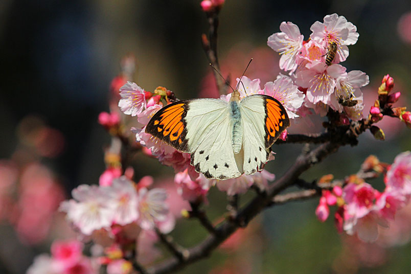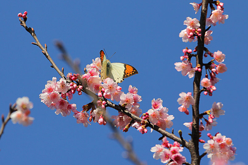,但山櫻還在冬眠,一隻端紅蝶飛來飛去,流連花間,我的鏡