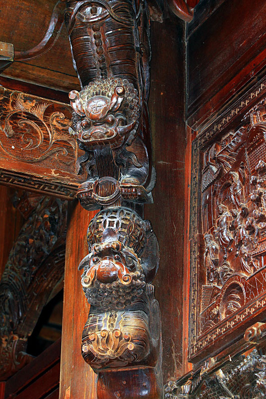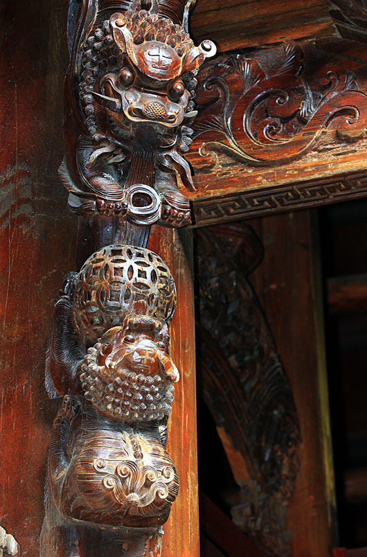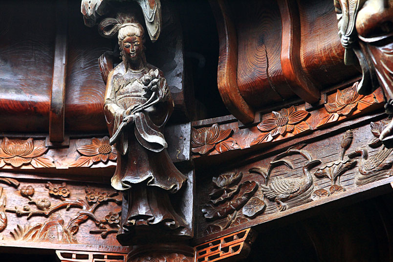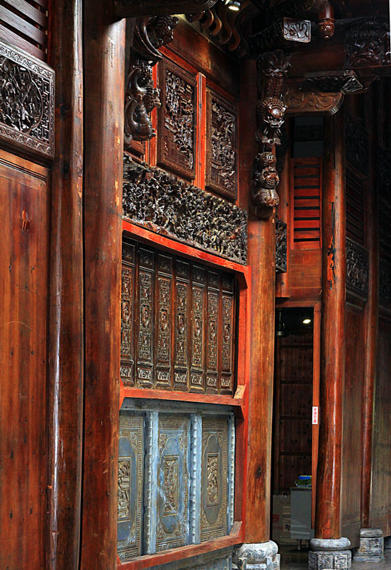 傳統徽派建築中與石雕、磚雕並列為重要的裝飾。