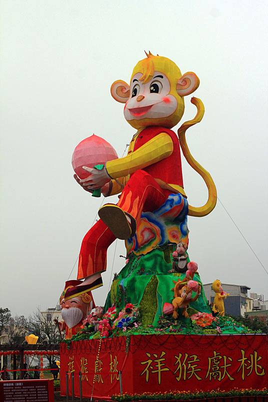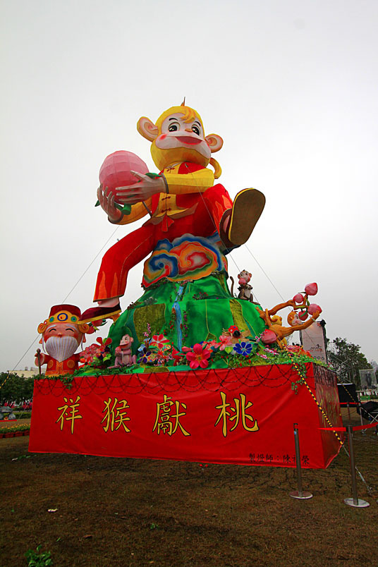 燈「祥猴獻桃」,由燈藝師陳祖榮老師製作,高達12公尺、寬8公尺