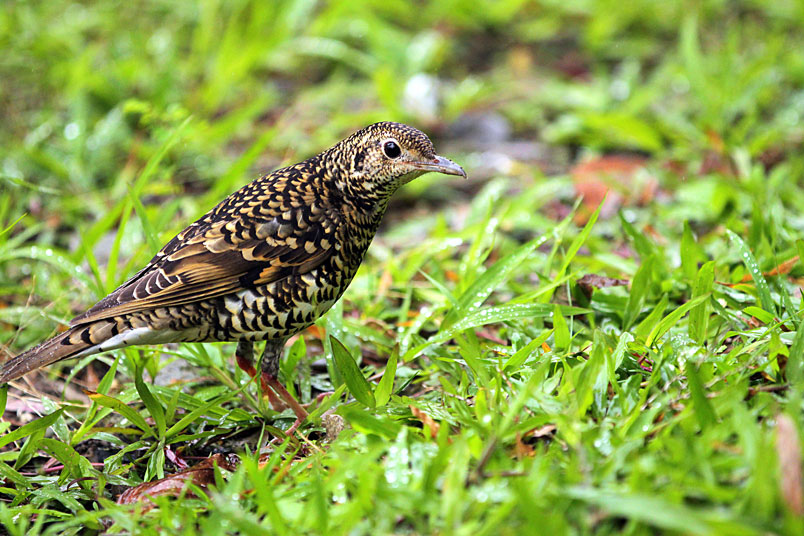 虎鶇全身密佈黑色鱗片狀斑紋,體上黃褐色,有白色眼圈