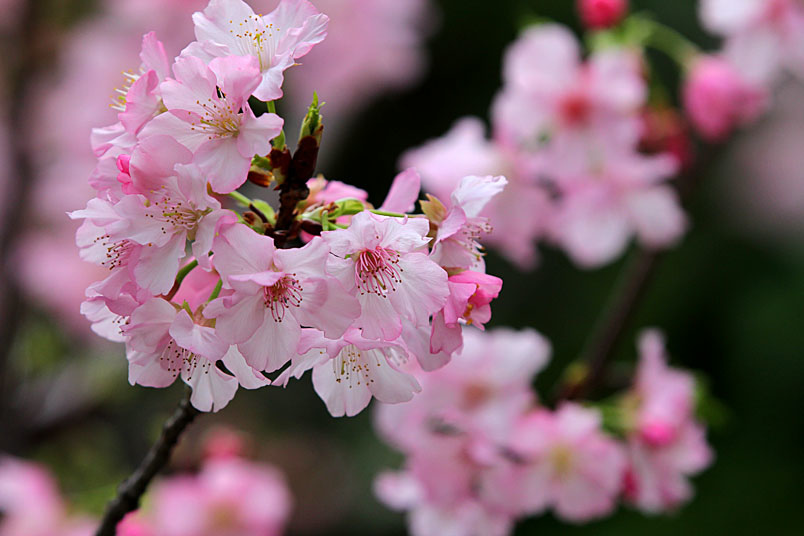 津櫻開得非常繁茂燦爛,粉嫩的色彩,給人滿滿的幸福感