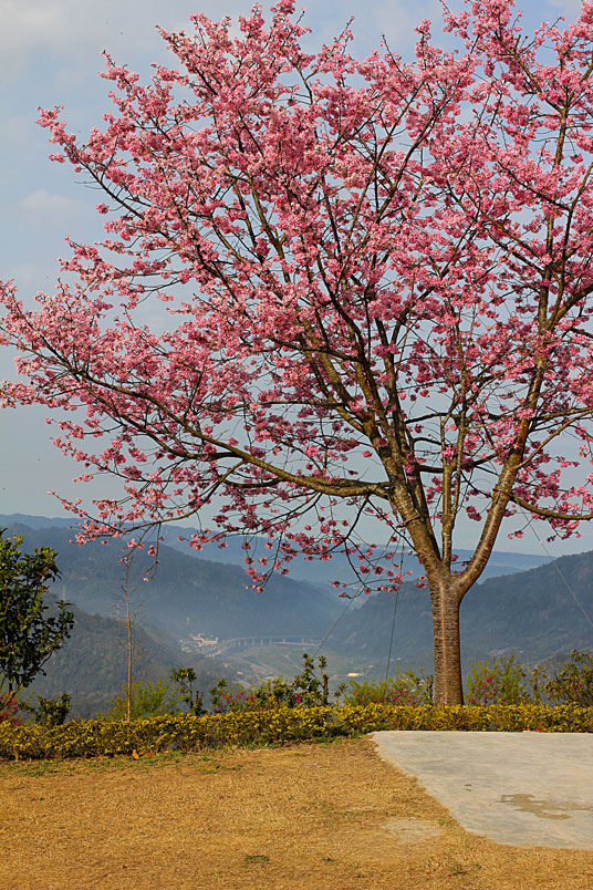 這日春陽高照,除了藍天,沒有期盼的雲海出現,但怒放的昭