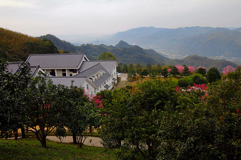 苗栗獅潭蓮臺山妙音淨苑海拔751公尺,寺院周圍廣植松、竹