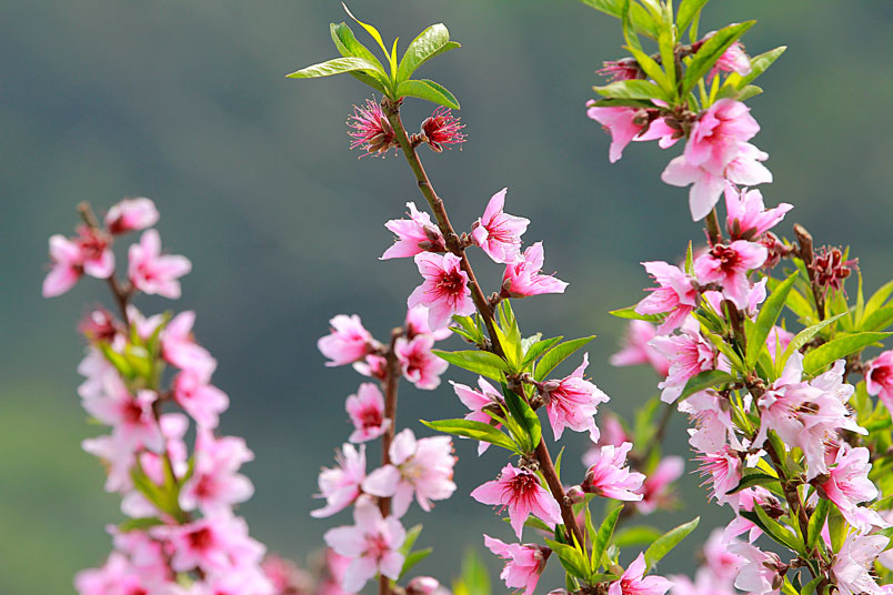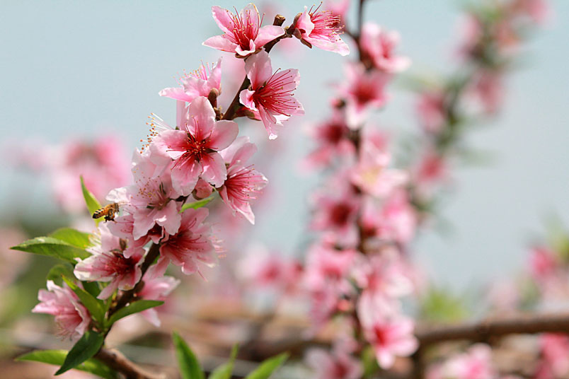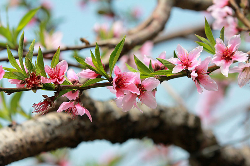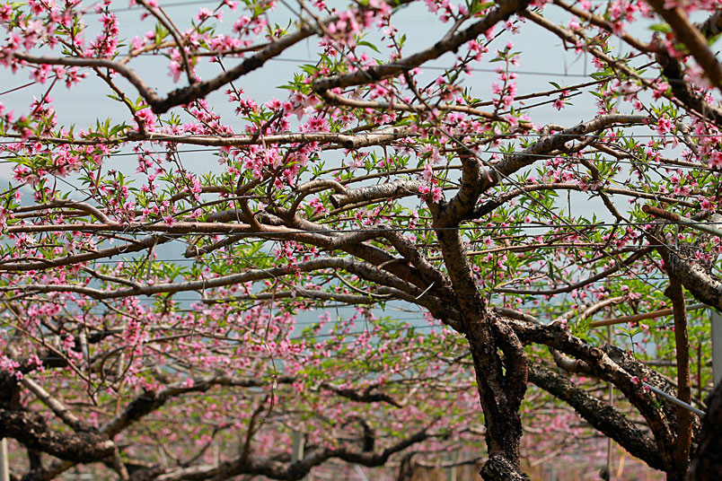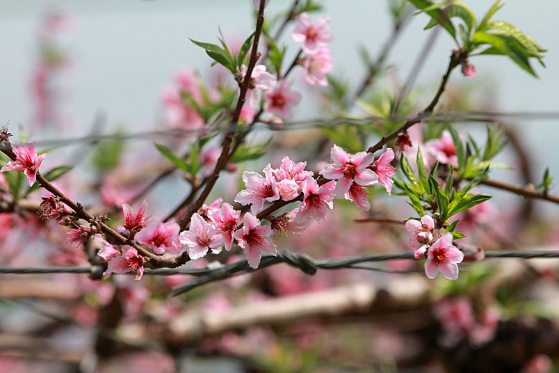 泰安舊鐵橋下有一片甜桃園,桃花正嬌美的綻放著,遊客