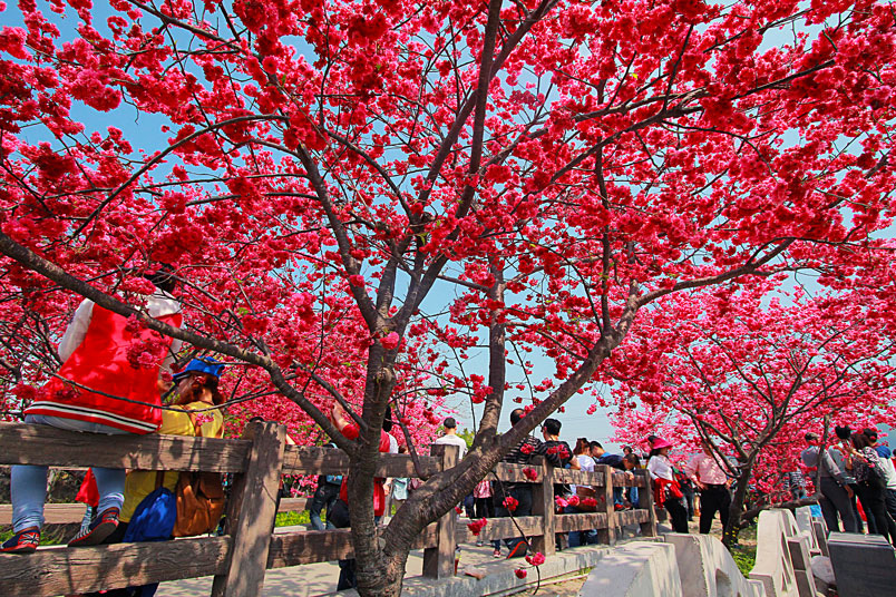 櫻紅滿蓋天際線,美麗且賞心悅目的櫻花林讓遊客流連忘