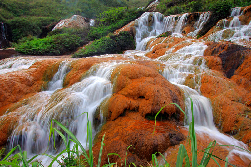 是它卻很特別,因為流經礦脈之故,導致瀑布呈現黃橙