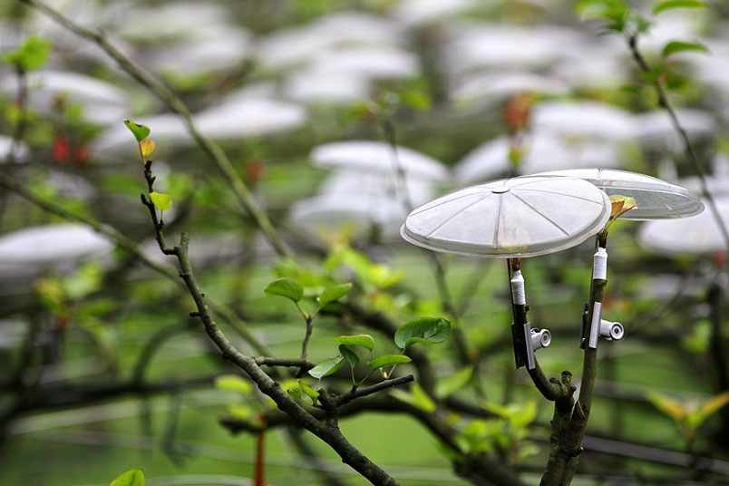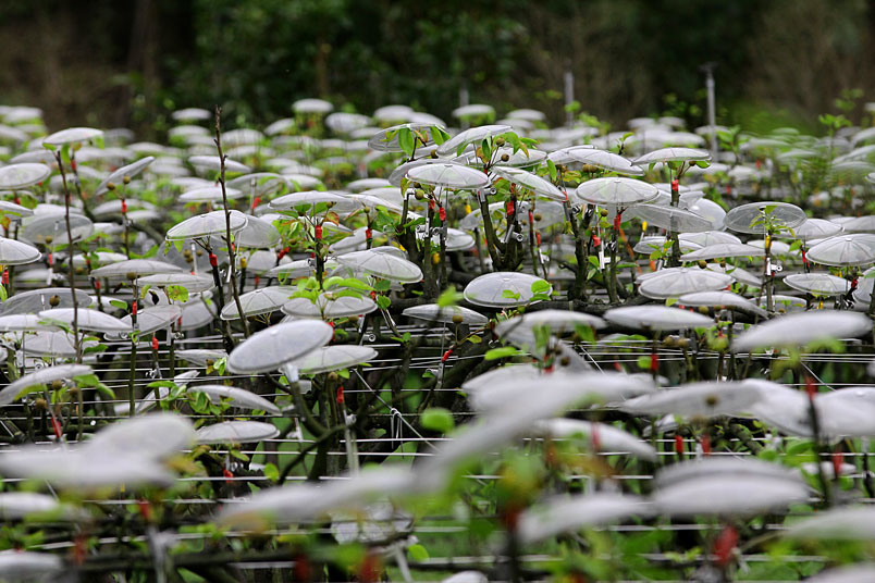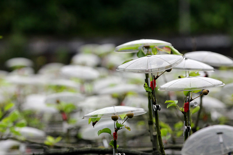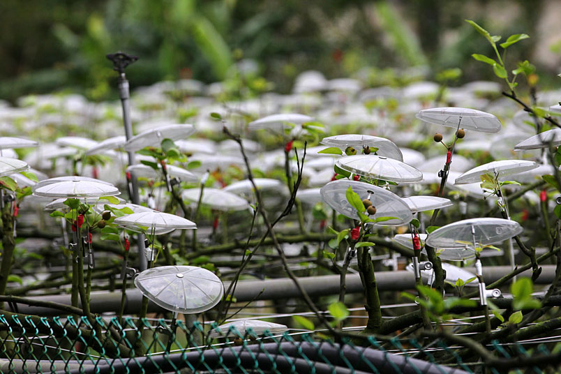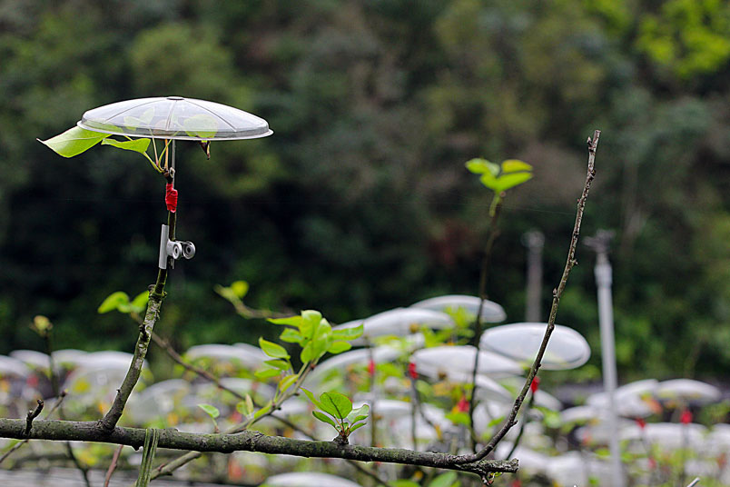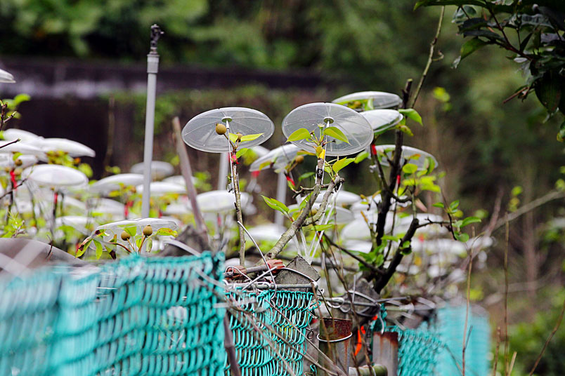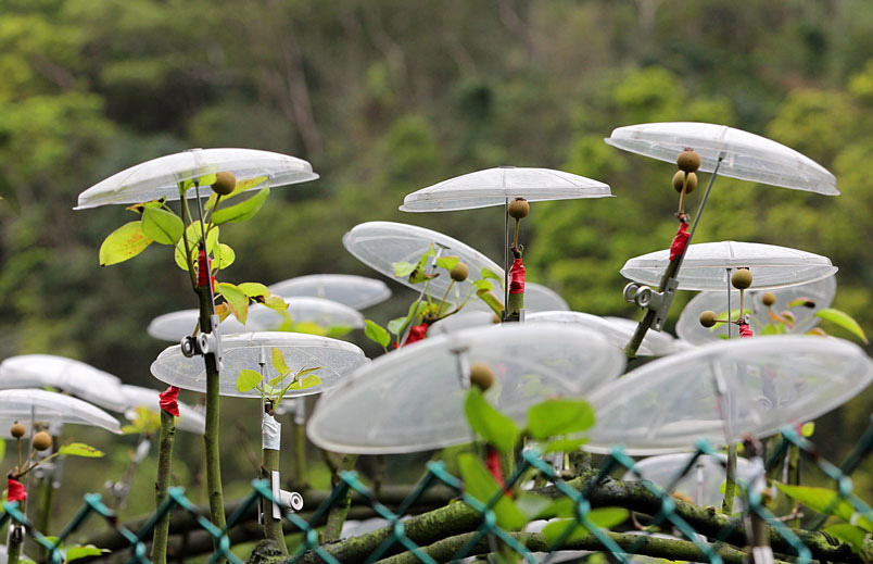 大都自費購買透光的小雨傘,在花苞上「撐傘」保護,形成