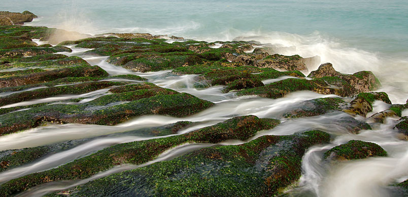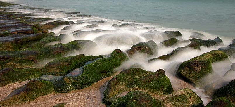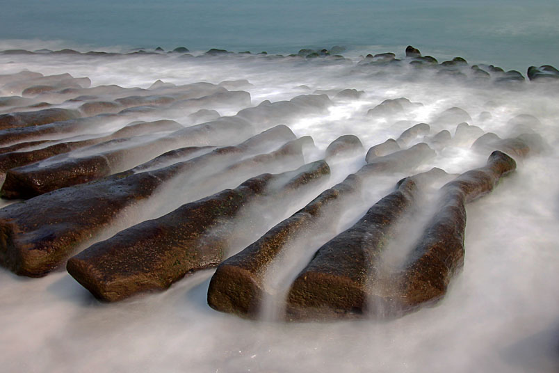 使用慢速快門,讓一大片原本看起來洶湧澎湃衝擊的畫