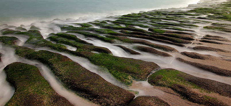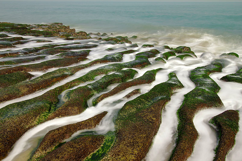 面,變得非常柔順,讓堅硬的石槽與柔軟的海浪,訴說