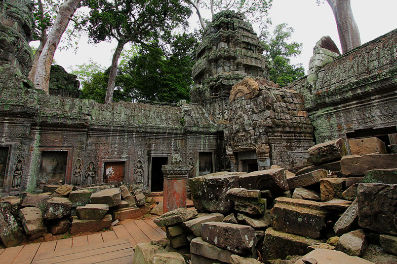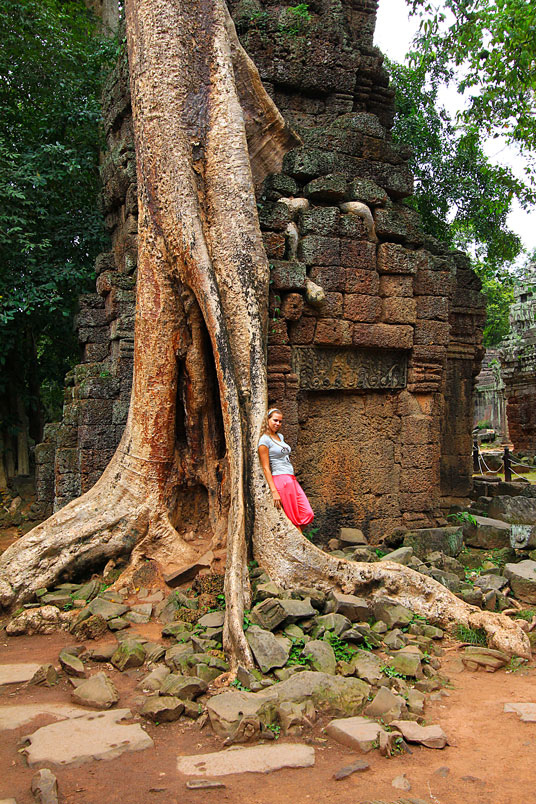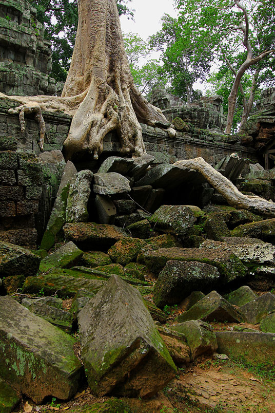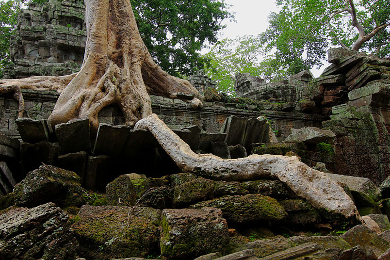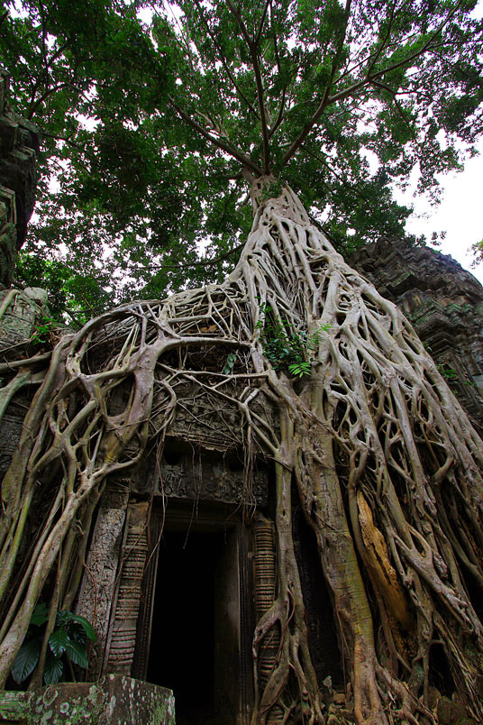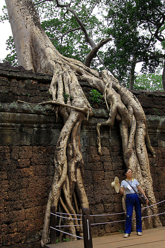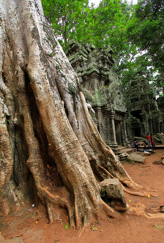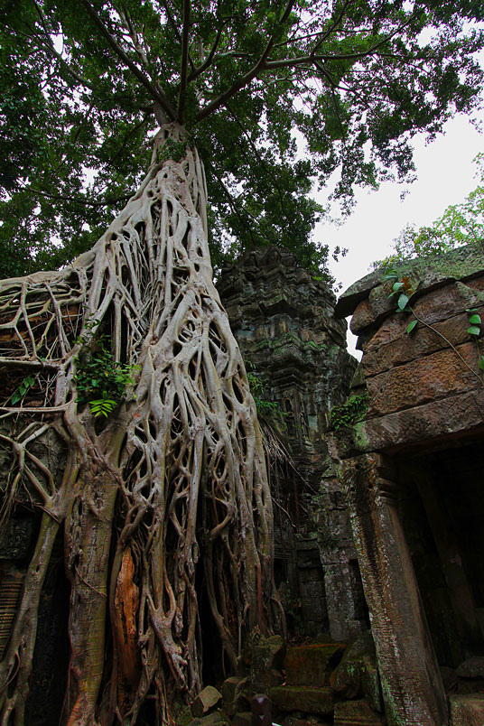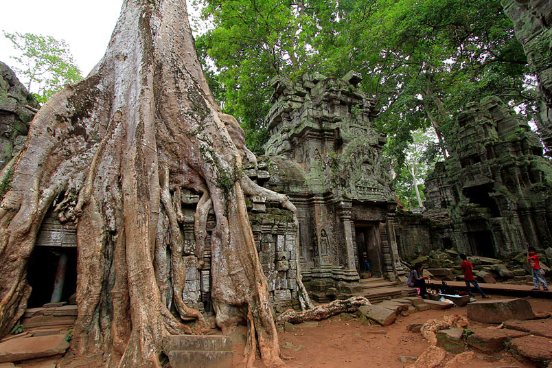 眾多吳哥建築物之中,以巨樹在遺跡之間盤根錯節生長著的
