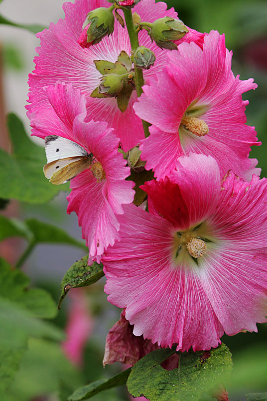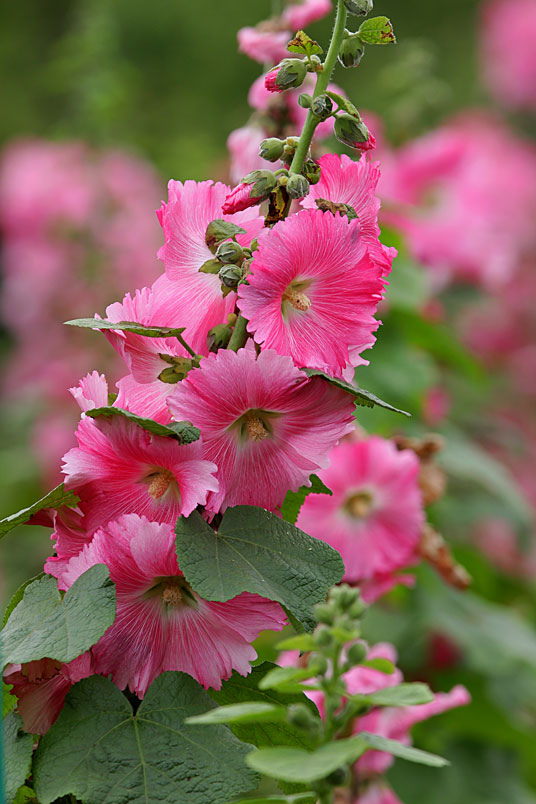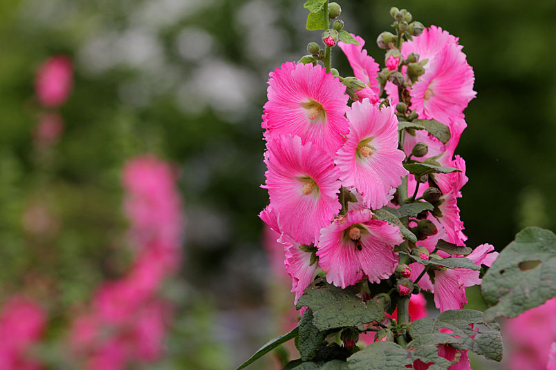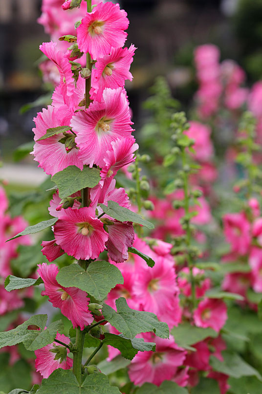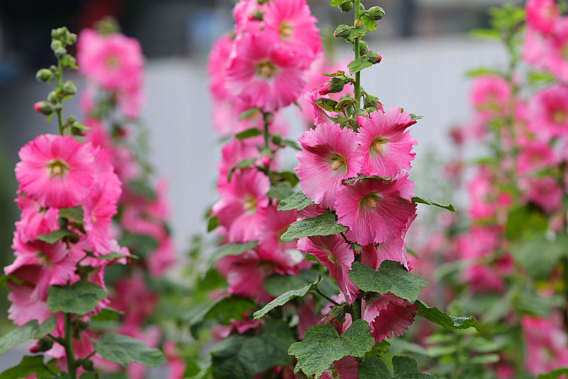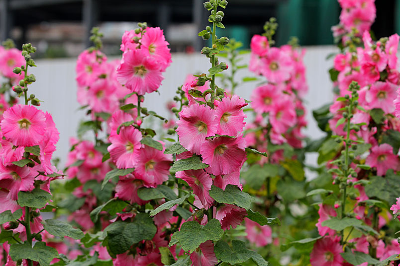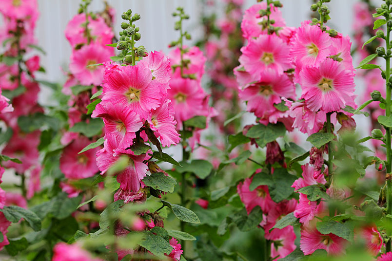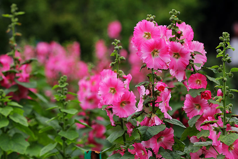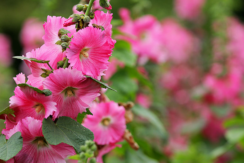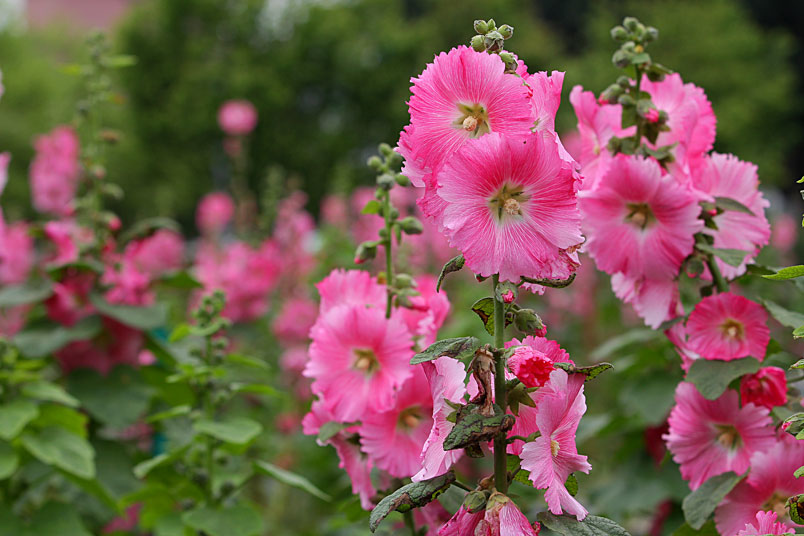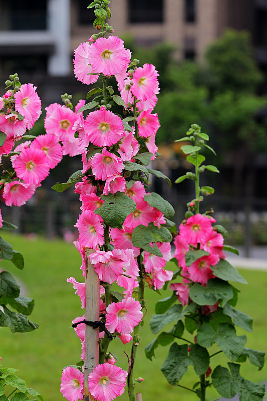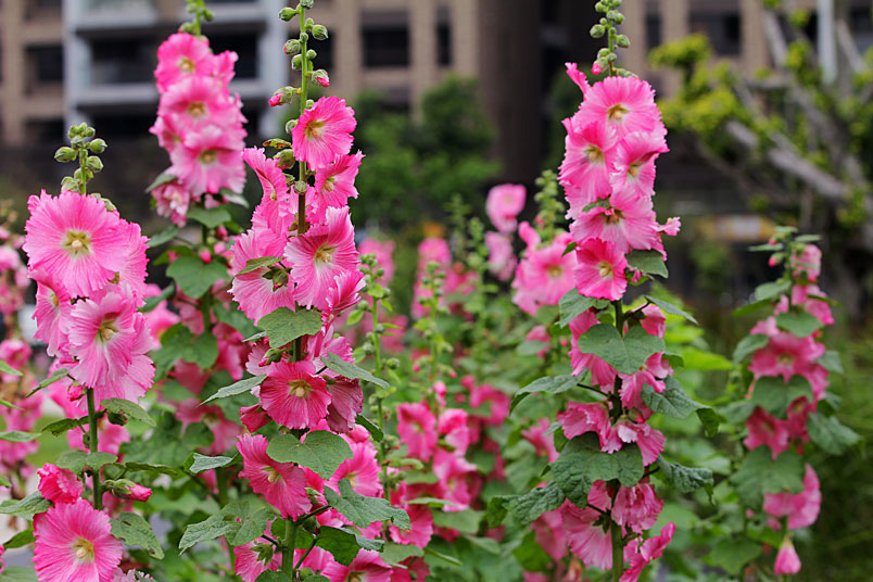 蜀葵花型大而美麗,花期雖長,卻不是一次就開滿全株,而