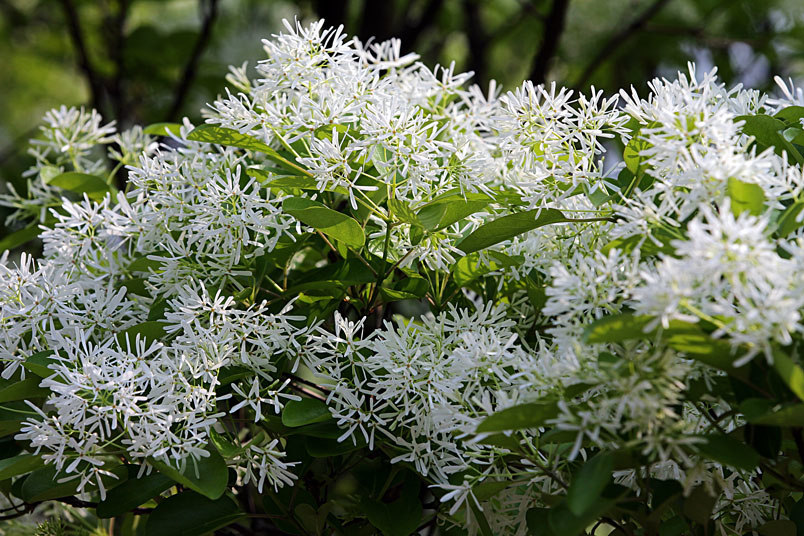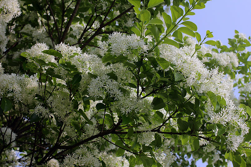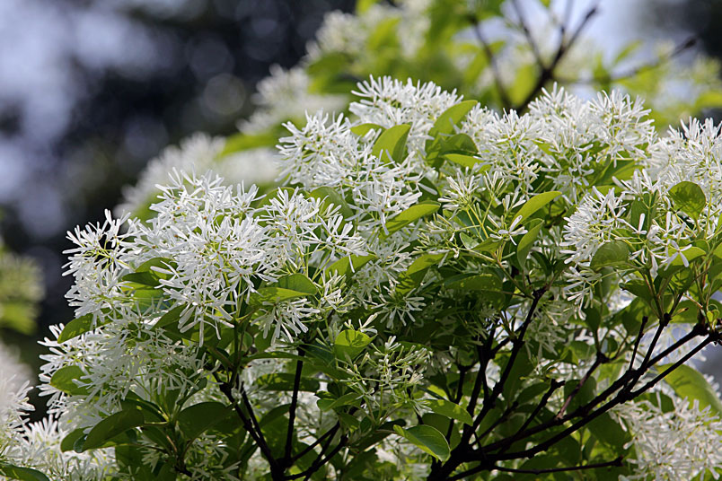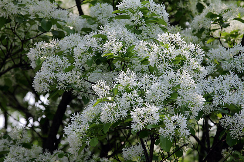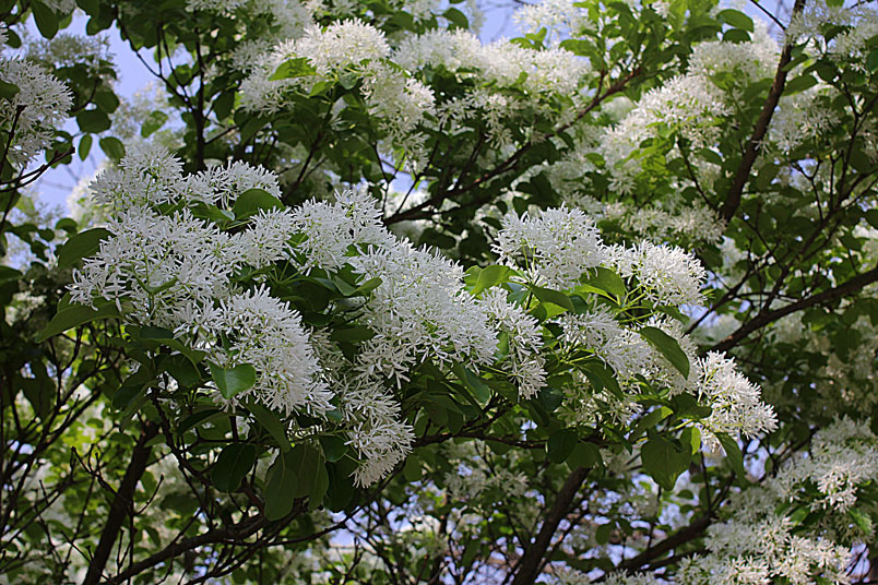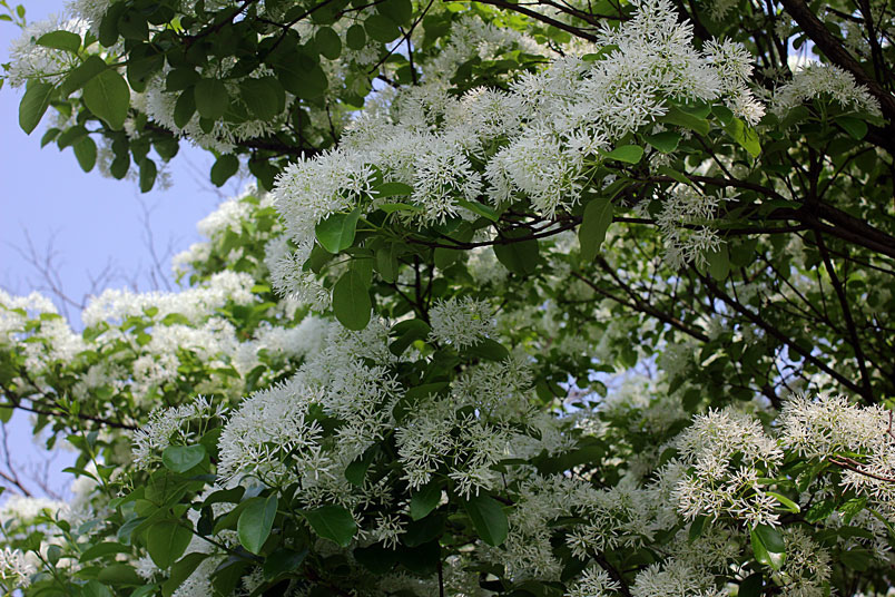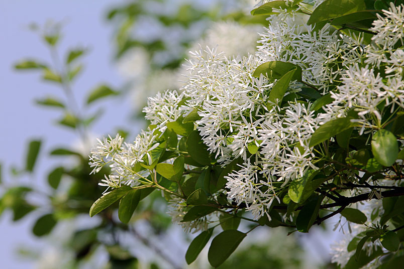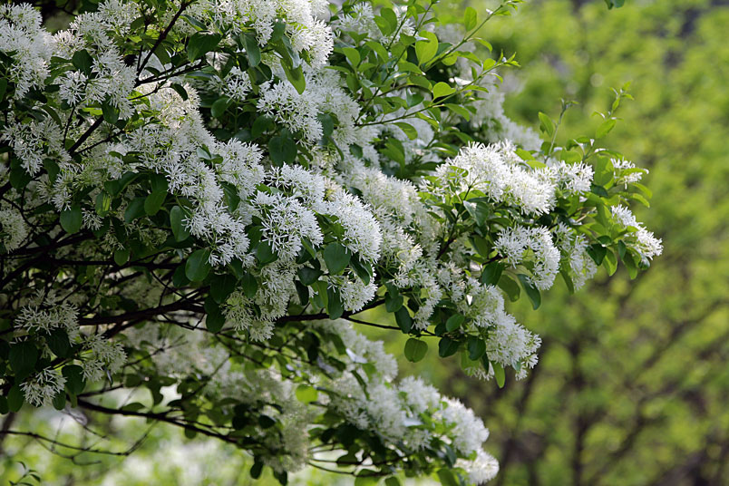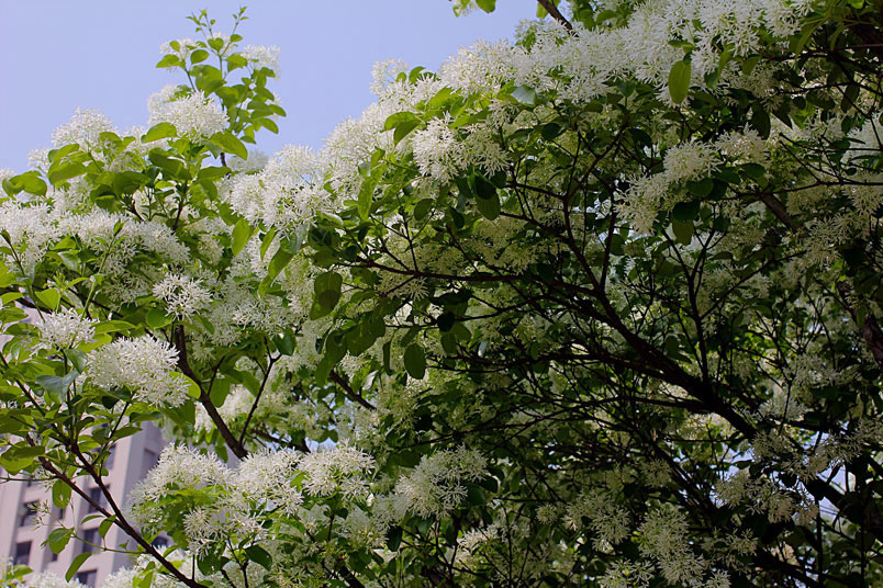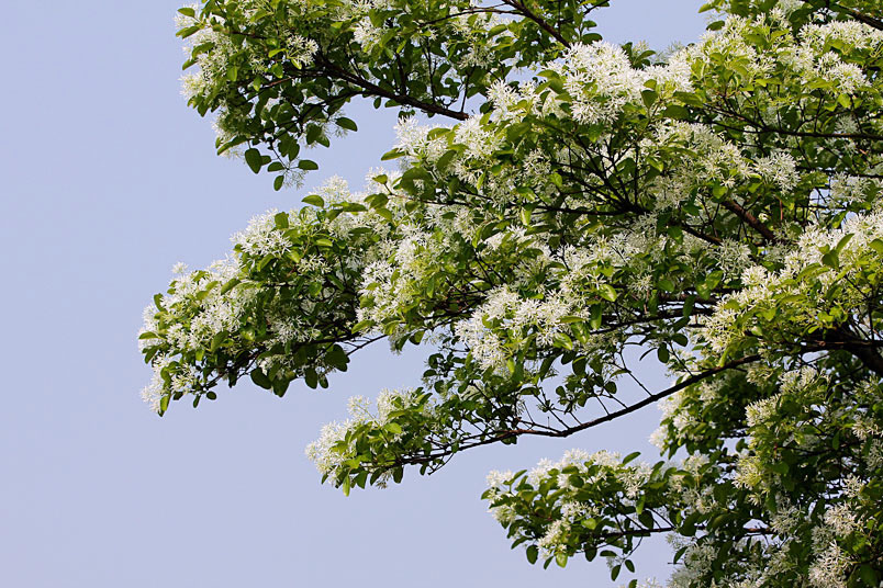 流蘇開花時,似素妝淡粉,單朵不顯眼,但繁花纍纍,宛如