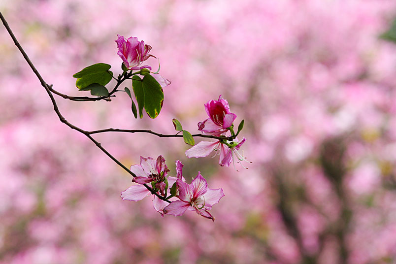 羊蹄甲花朵盛開時滿樹粉色的花朵,並散發著怡人的香氣,