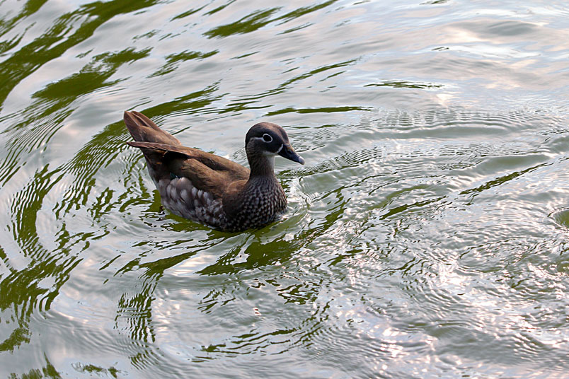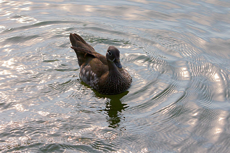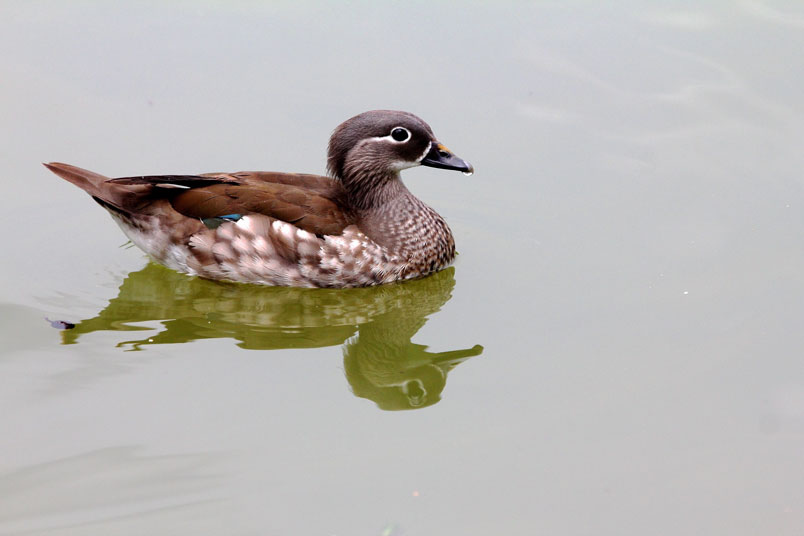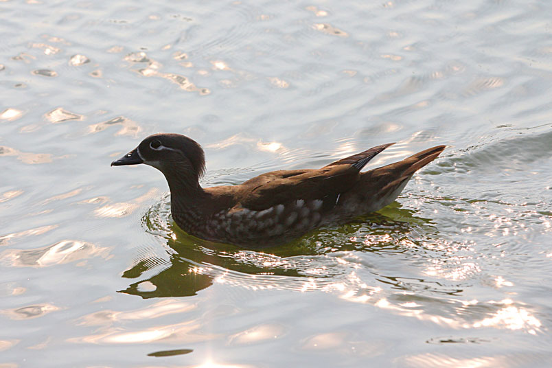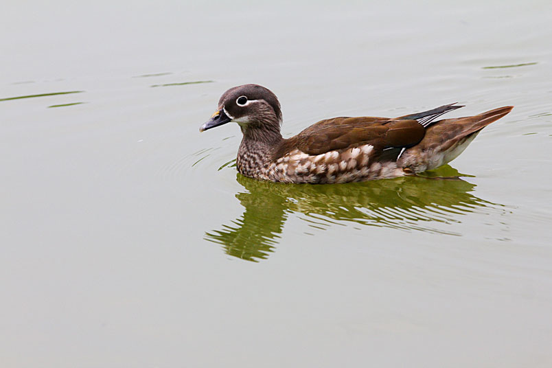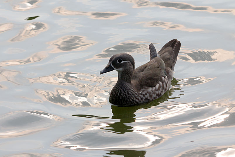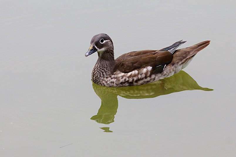 雌鳥嘴喙暗褐色,基部有白色細環,背部暗褐色,眼周圍白色