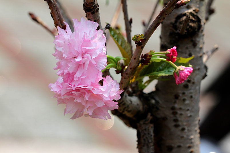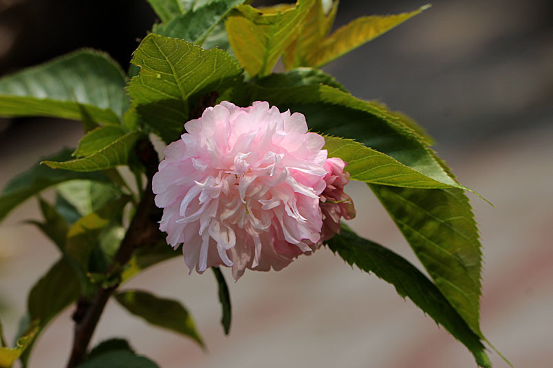 四月天,以雍容為主的重瓣櫻花陸續上場了。