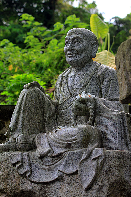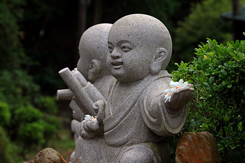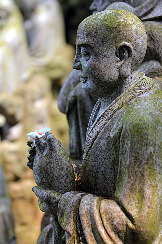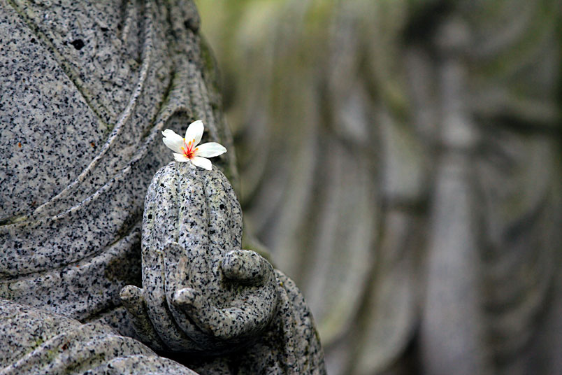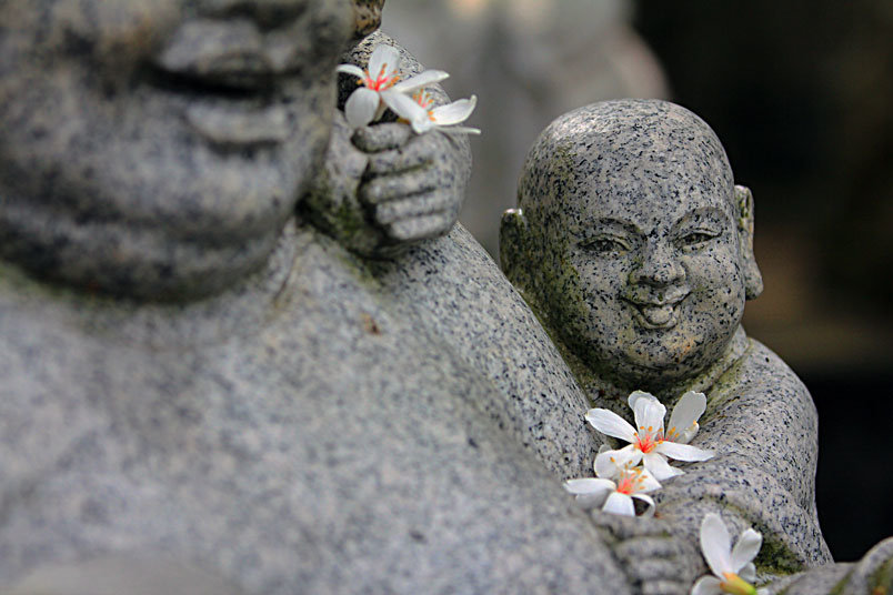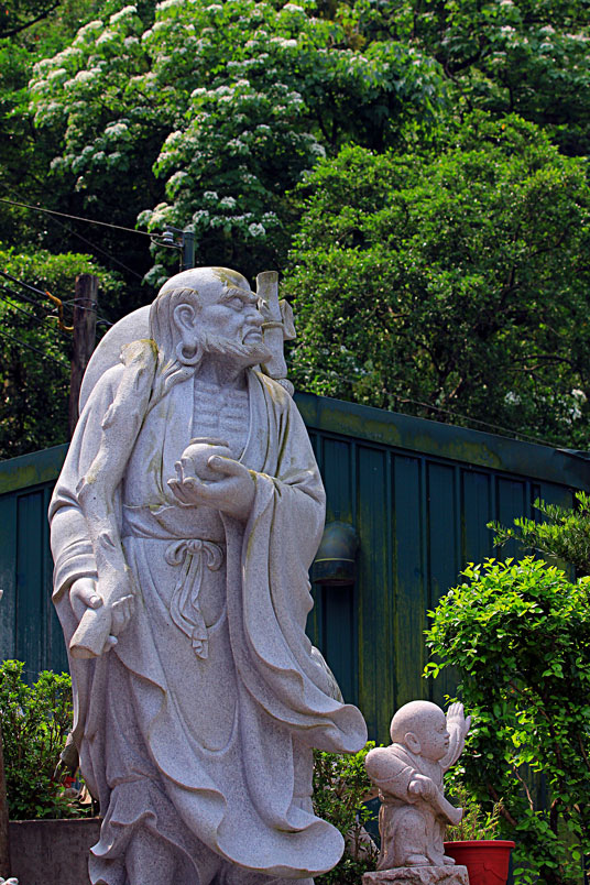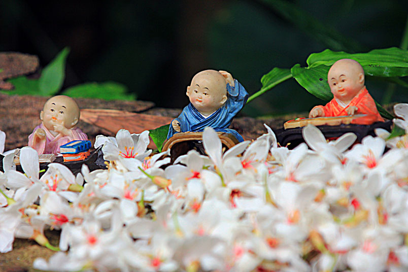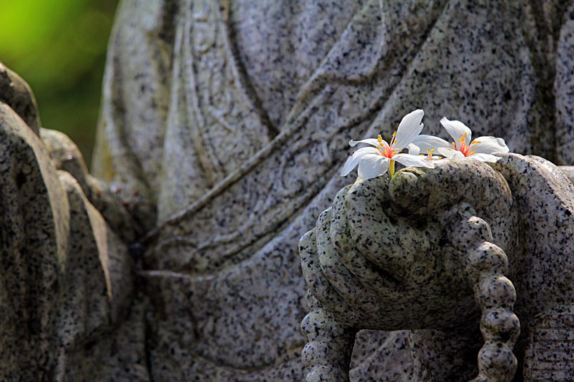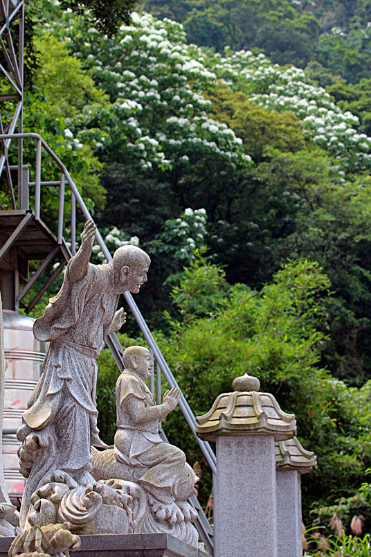 寧靜的山林,油桐花在石像間紛落,雖然並非賞桐熱門景點,