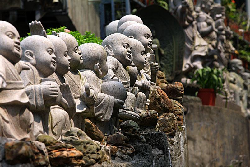 是鳶山西側下方。小小廟宇,擁有近千尊大小石雕神像,據說