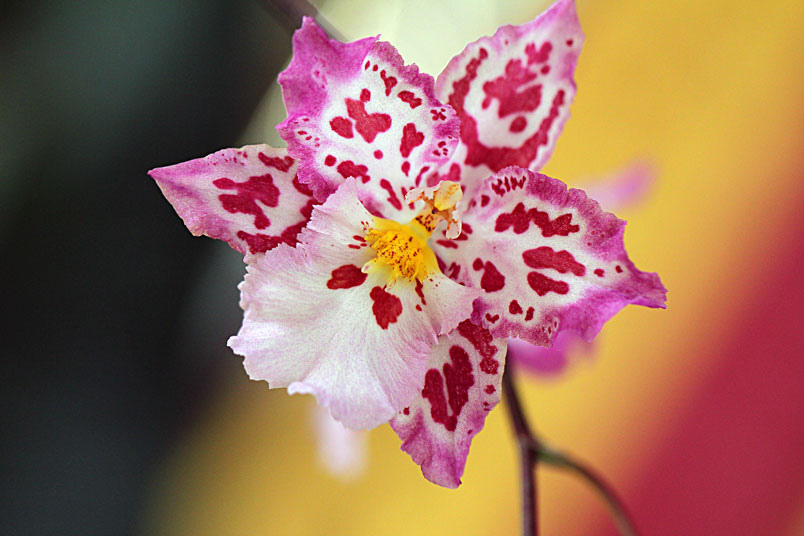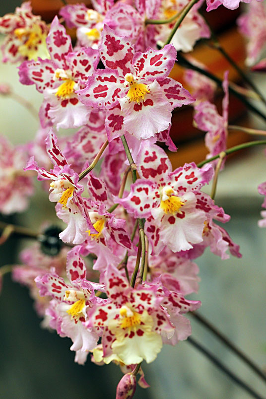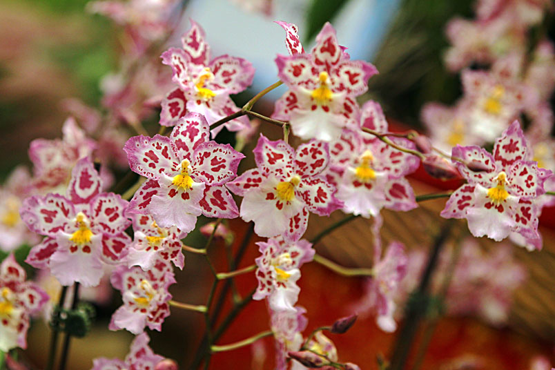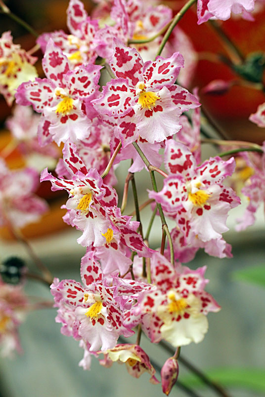 色彩鮮豔、花型細緻的文心蘭,宛若女子翩翩起舞揚起的裙襬,本