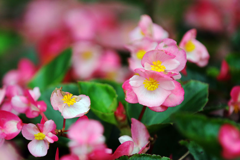 株型矮小、花朵茂密、葉色變化多端的四季秋海棠,為秋海棠屬的