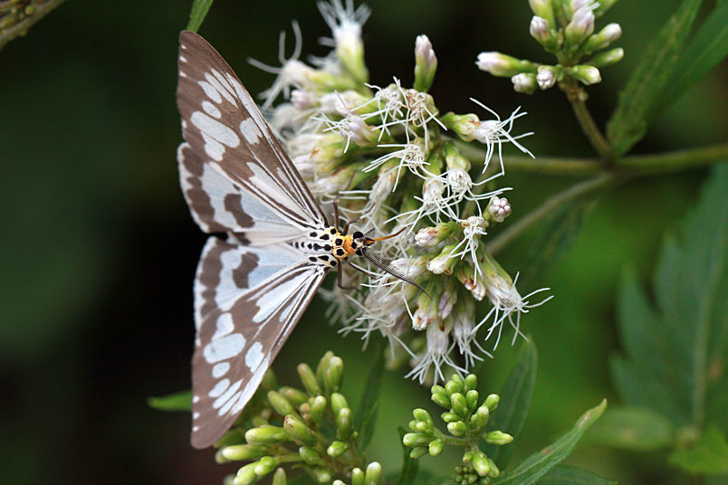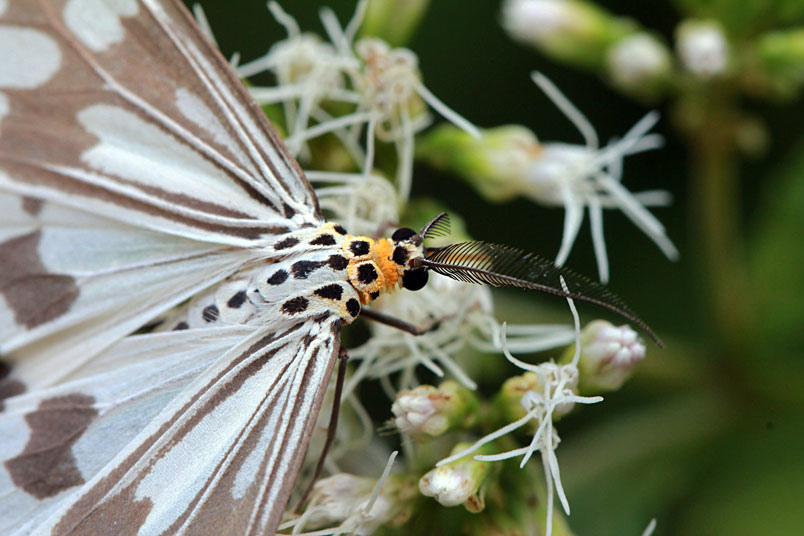 粉蝶燈蛾是在白天活動的,牠也會吸食花蜜,你可別把牠誤