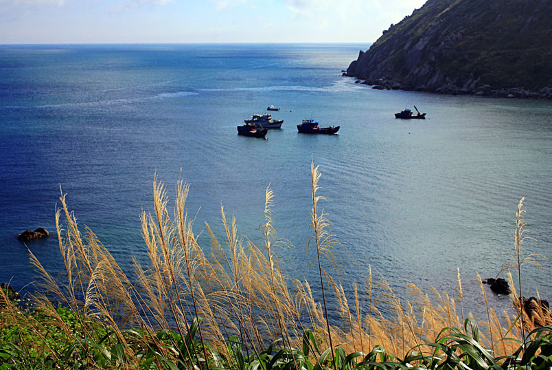 每當風浪稍大,黝黑的岩石在風浪中若隱若現,風平浪靜時則能觀賞