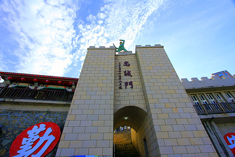 「戰地九份」的風味。爬上城門,雕像旁更是俯看中柱港的好地