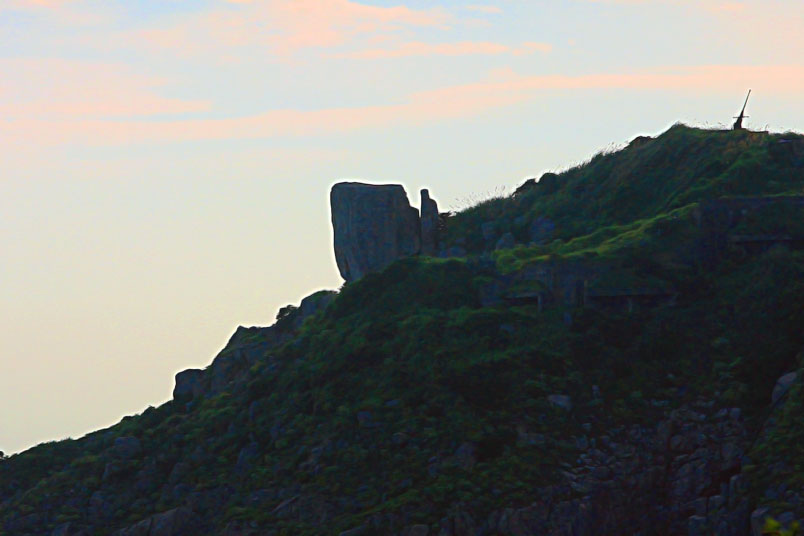 西引島「二六據點」山坡有一巨石矗立,由中柱港西望,宛如一