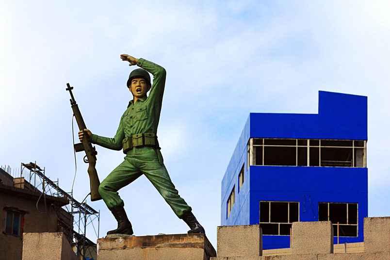 當地人都稱城牆頂上持槍的阿兵哥為(阿榮)。因為阿榮在鐵牛運