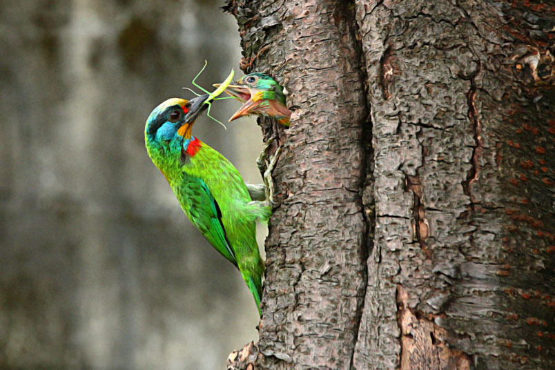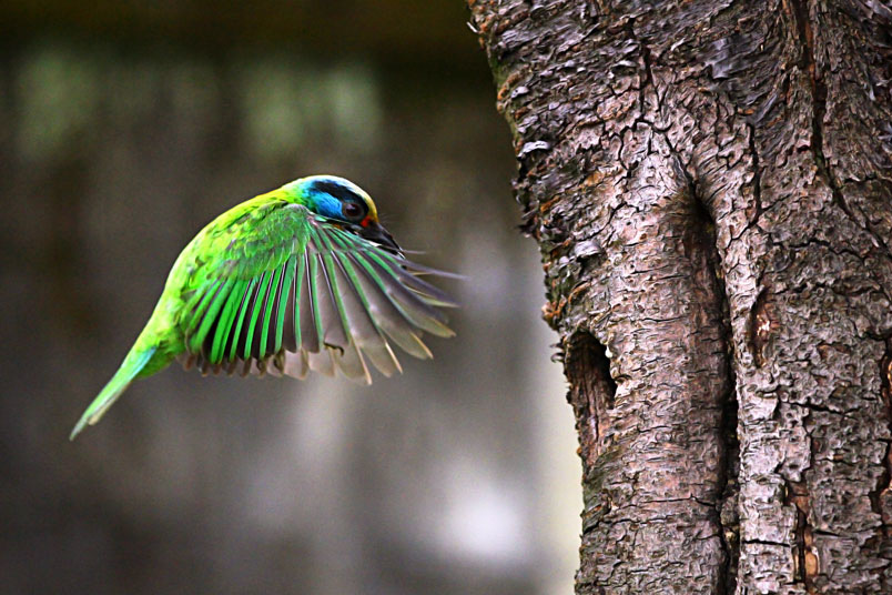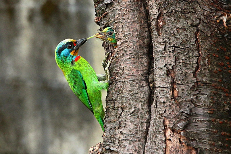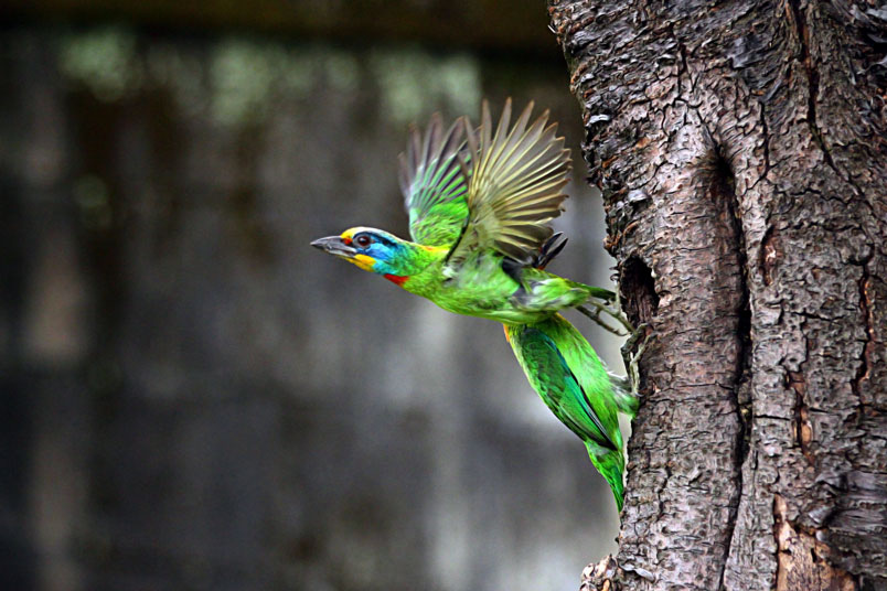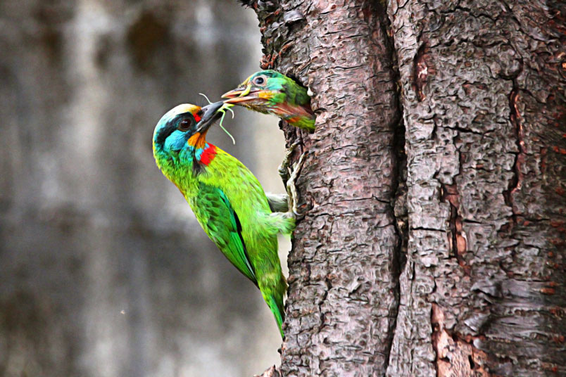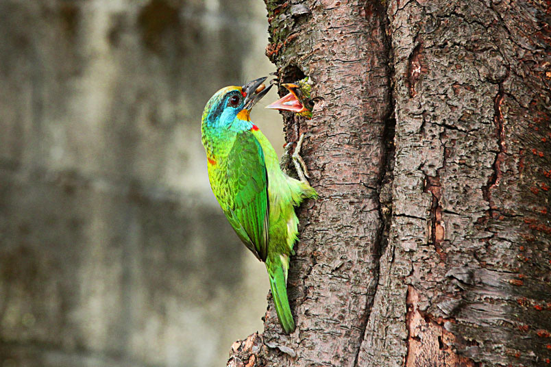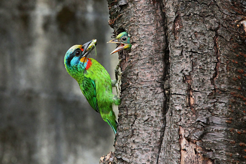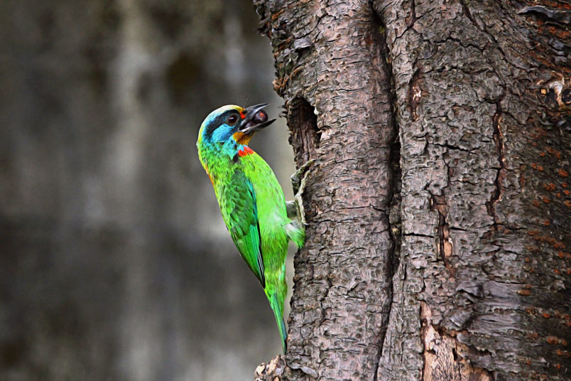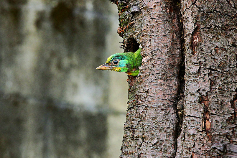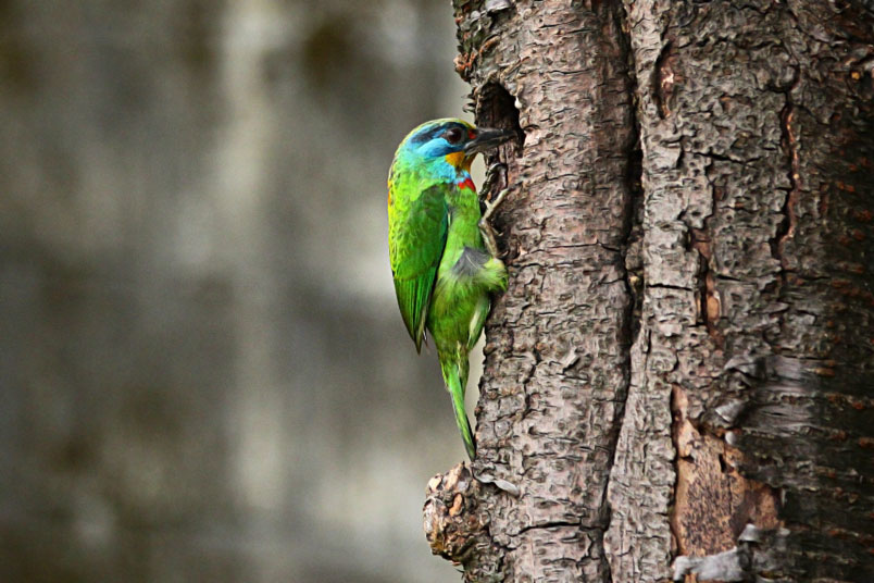 五色鳥最特別的習性,就是會像啄木鳥一樣啄木,並且在樹洞