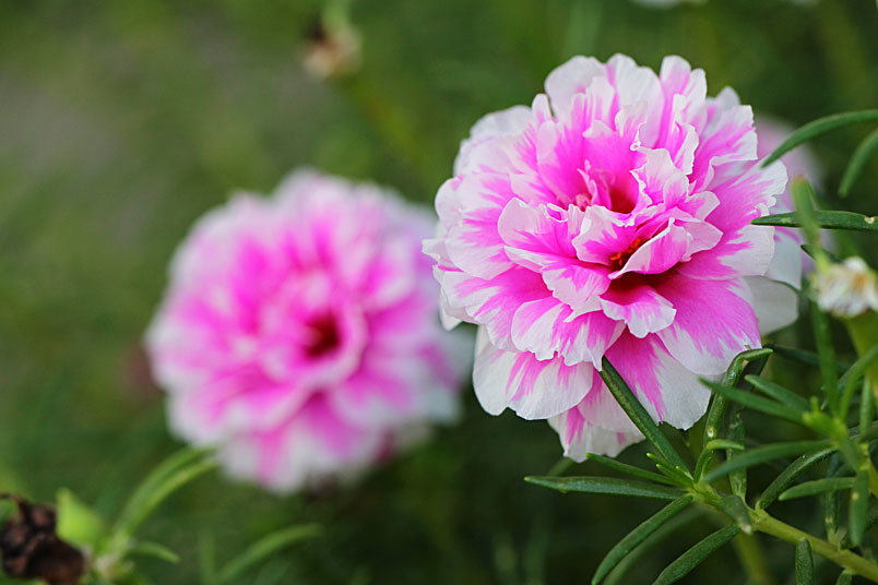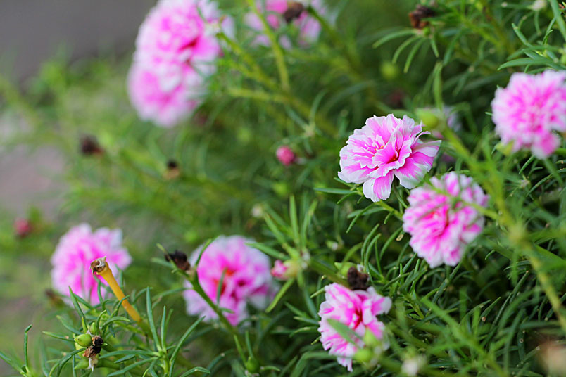 松葉牡丹葉片形似松葉而得名,早晨在太陽照射下,花開得特別