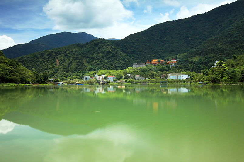 然湖泊,潭水長年清澈碧綠,相傳潭名之由來,乃早昔此潭因盛