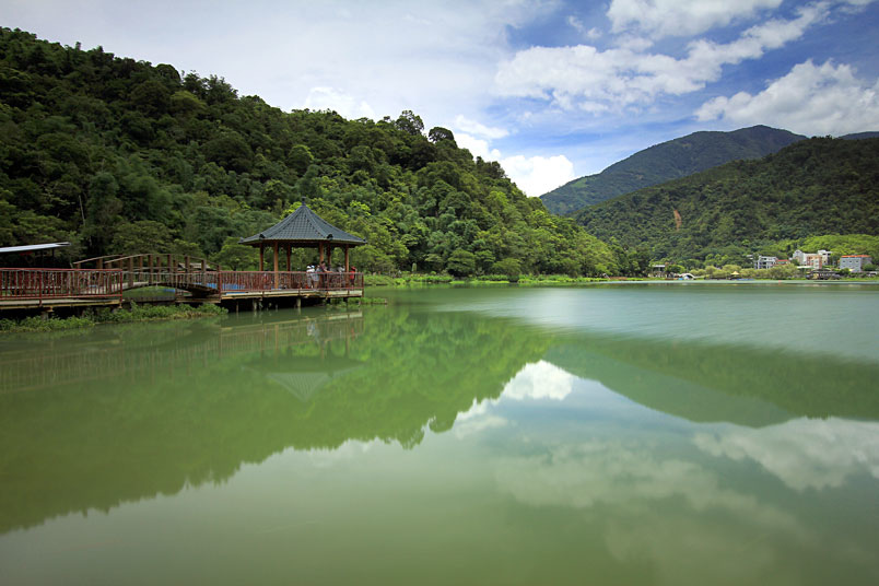 遊其間,頗有曲徑通幽之趣,潭岸之湖濱涼亭休憩小坐,享受一