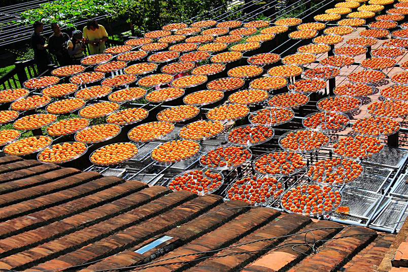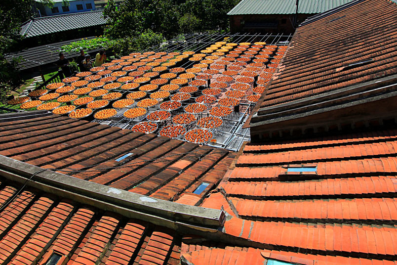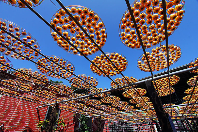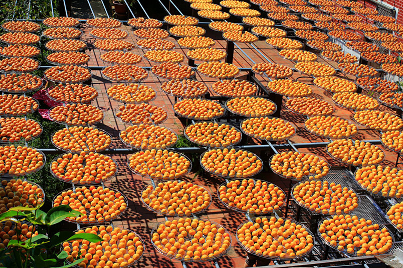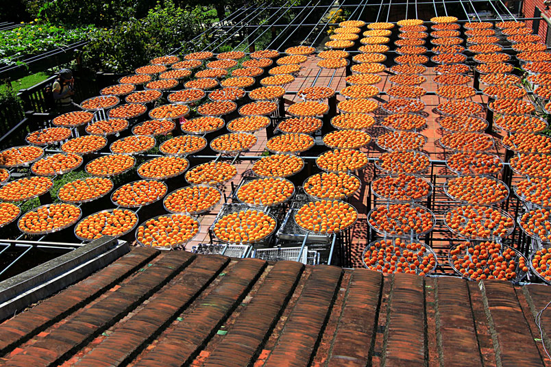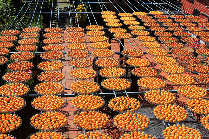 日曬是為了逼出柿青內部的葡萄糖與果糖,烘乾與再烘乾的目