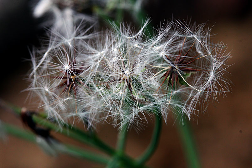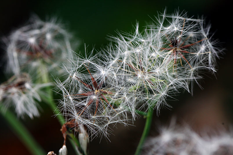 紅褐色部分是種子,白色的冠毛可以幫助傳播。