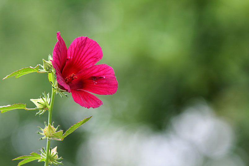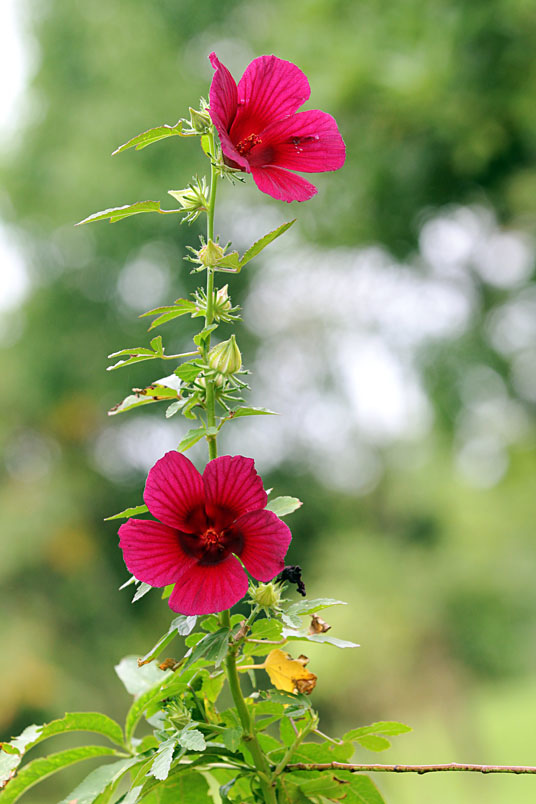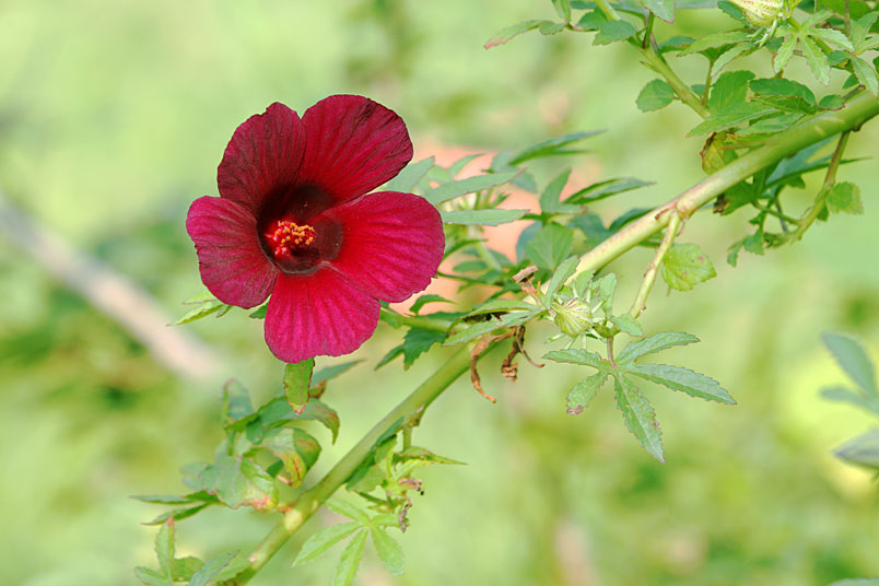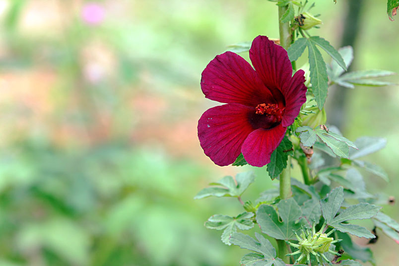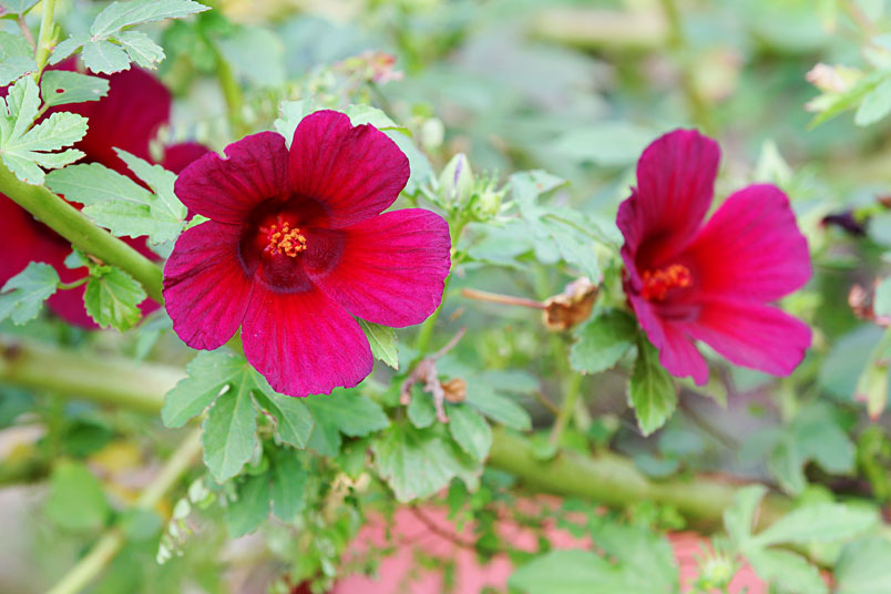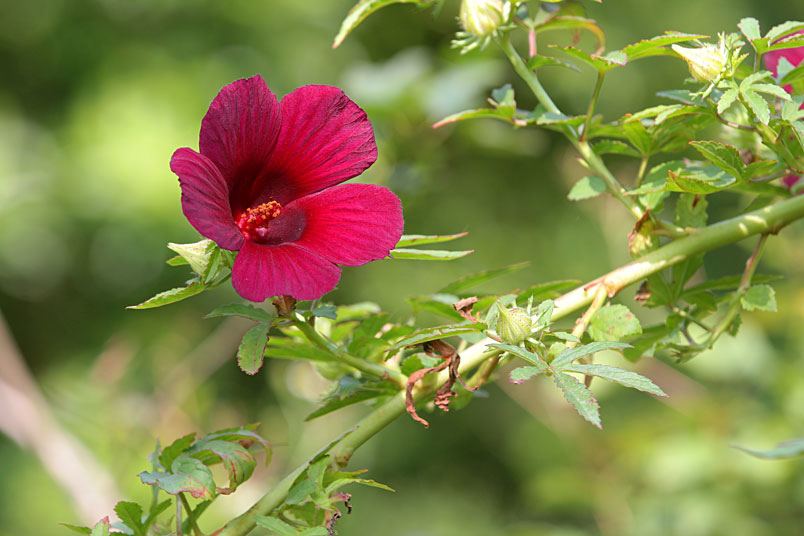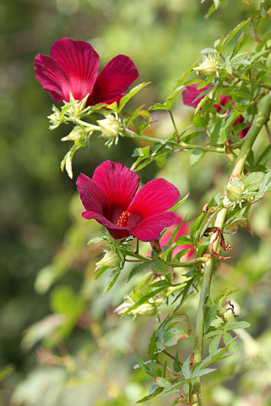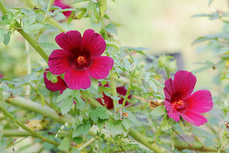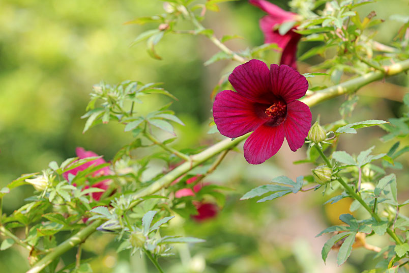 紫葵,錦葵科,常綠灌木。別名:十月玫瑰、紅寶石木槿。莖直