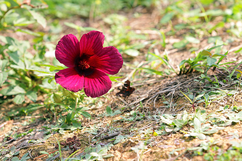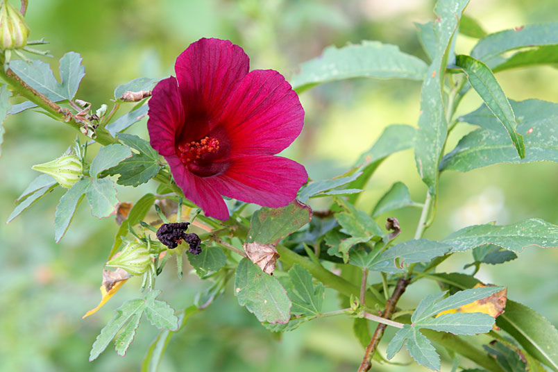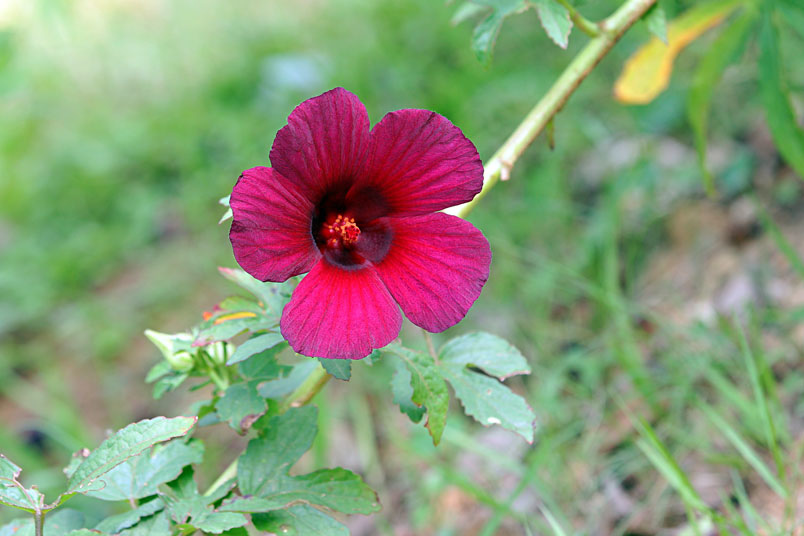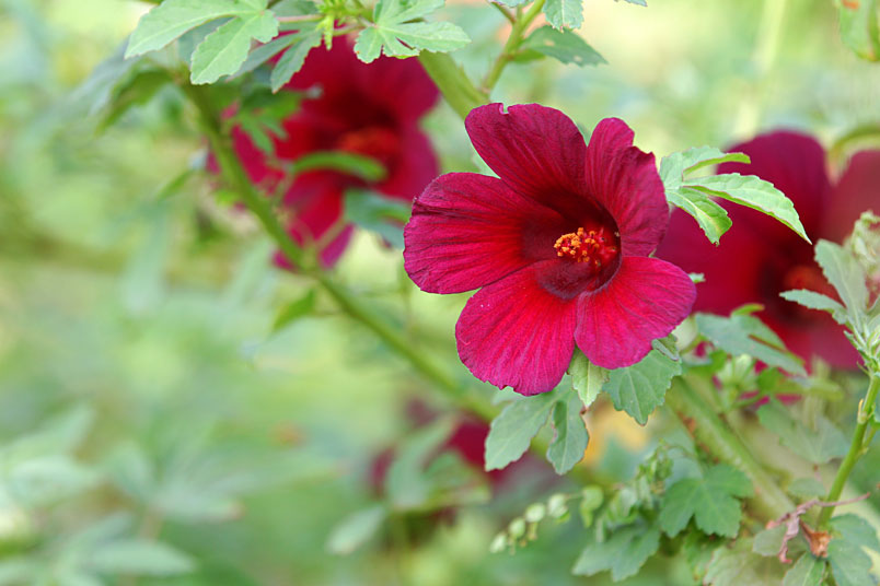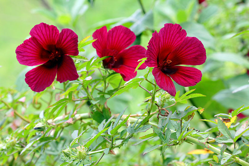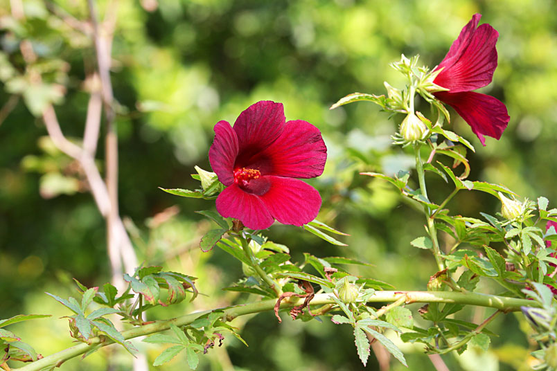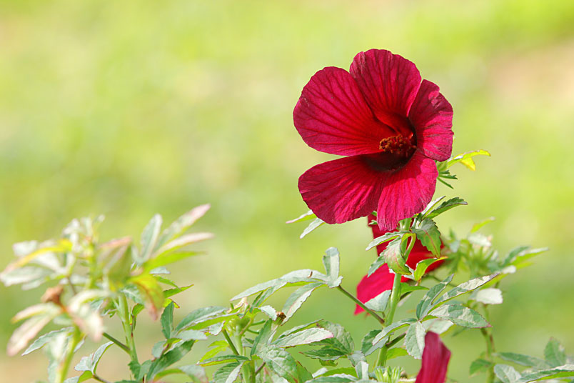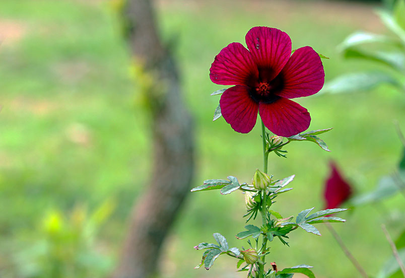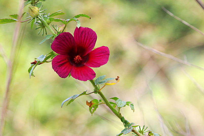 紫葵,錦葵科,常綠灌木。別名:十月玫瑰、紅寶石木槿。莖直