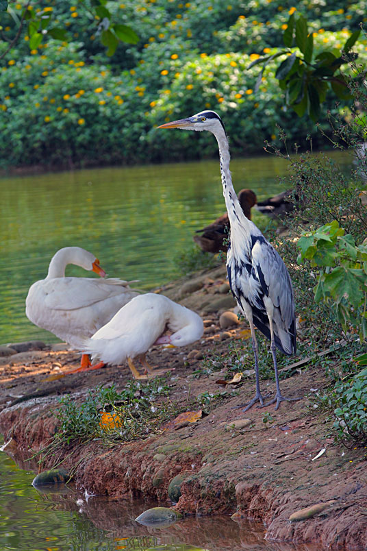 蒼鷺是一種大型的水鳥,牠常縮頸靜立在水邊,不理會烈日的曝曬