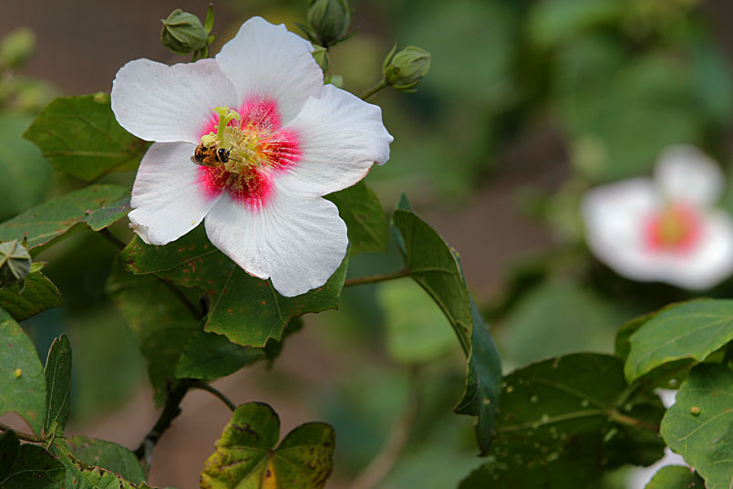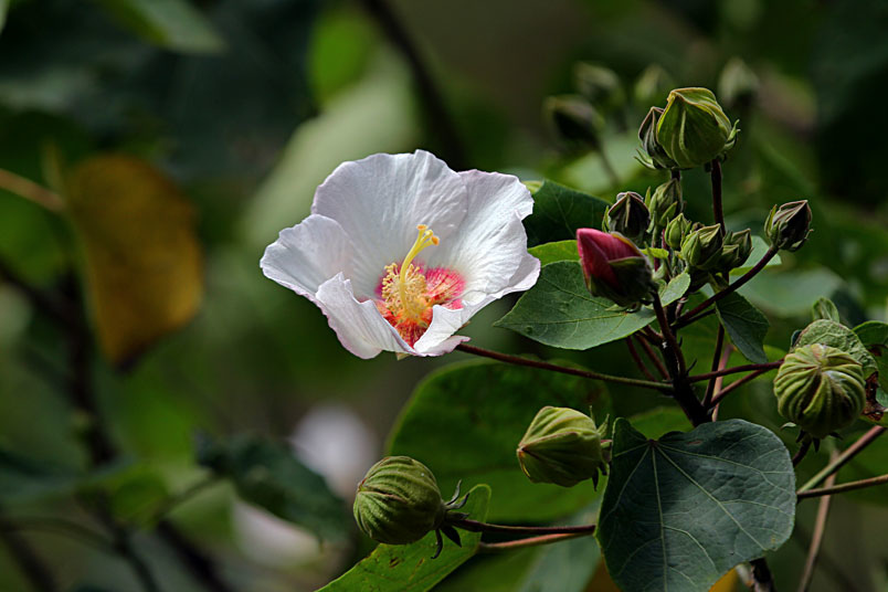 山芙蓉花在清晨初綻放時,先是呈現鮮白色,再漸轉為粉紅色,