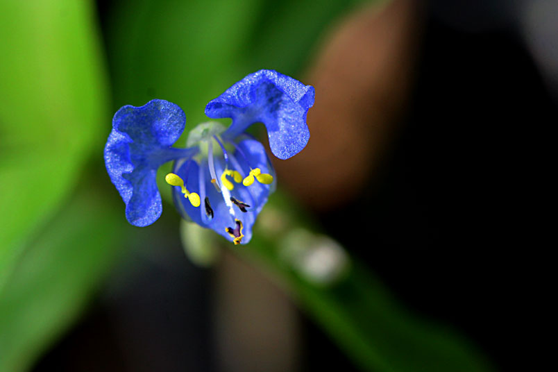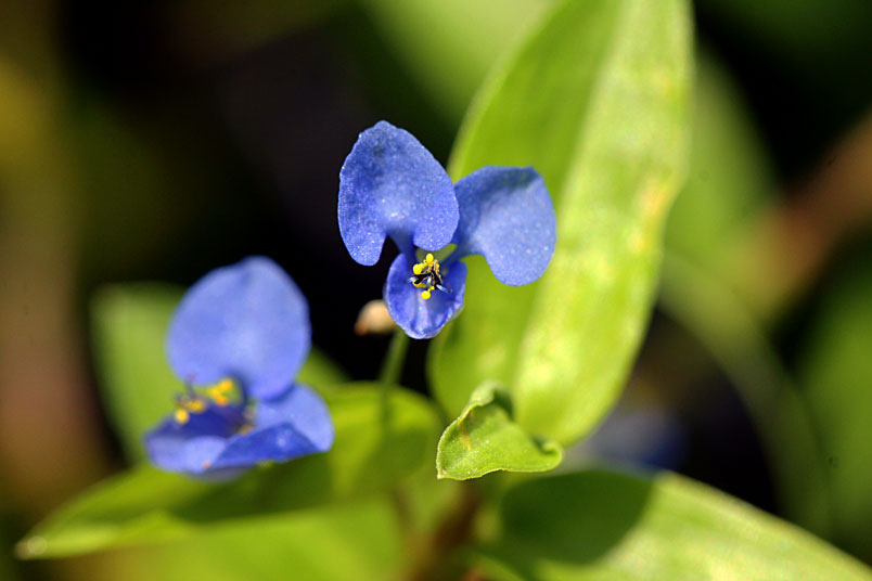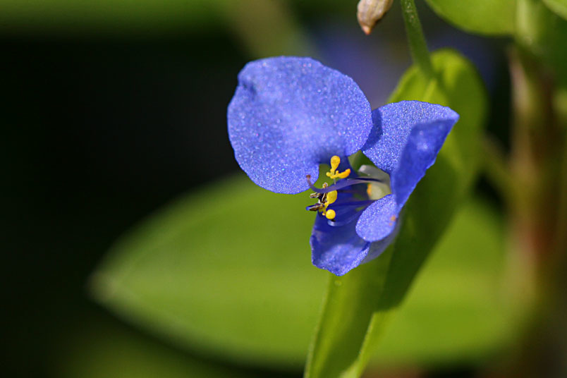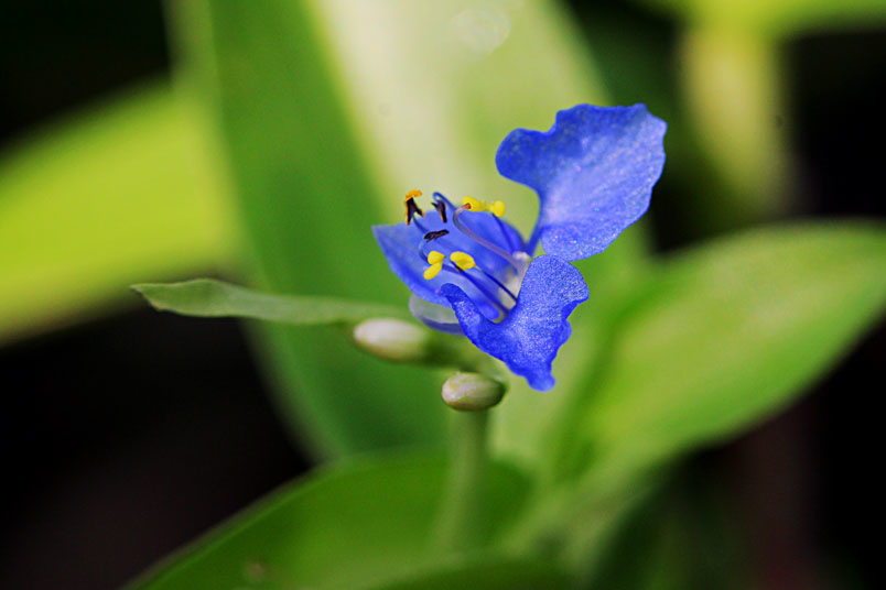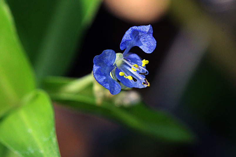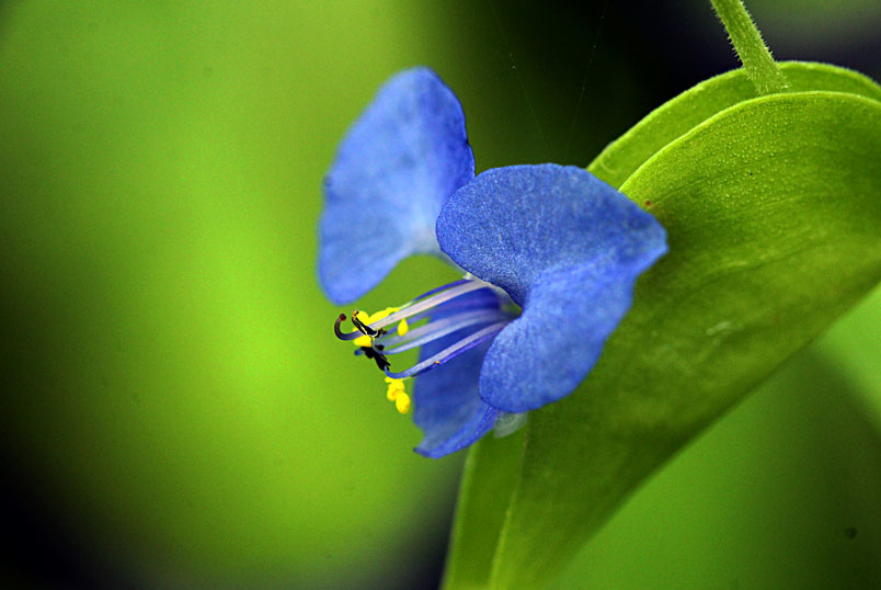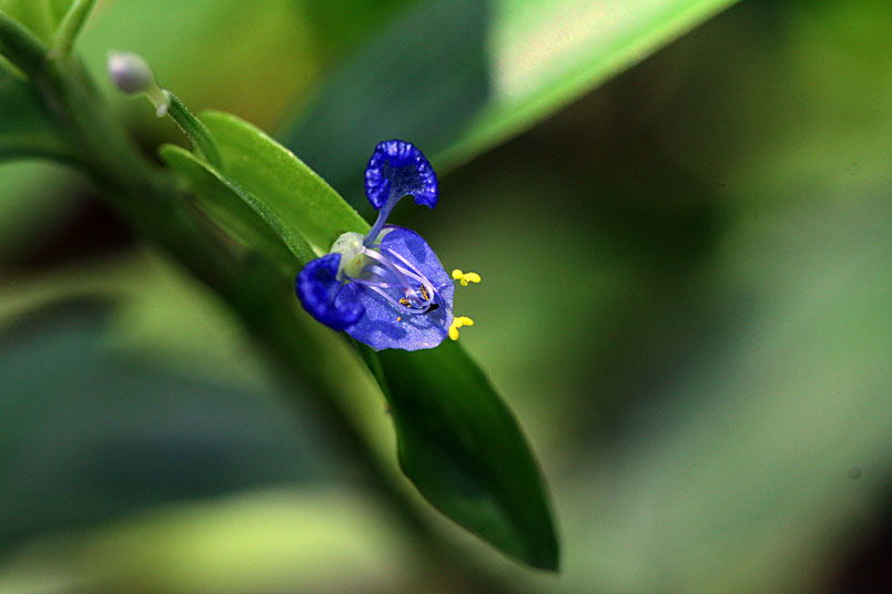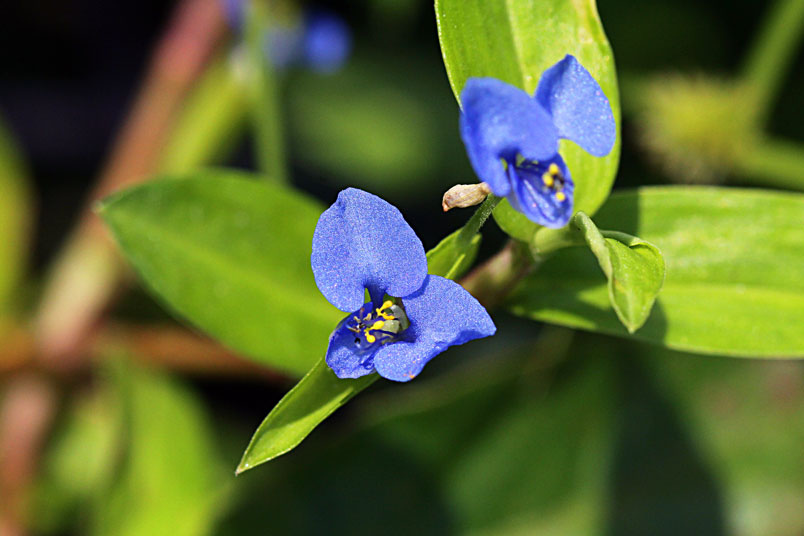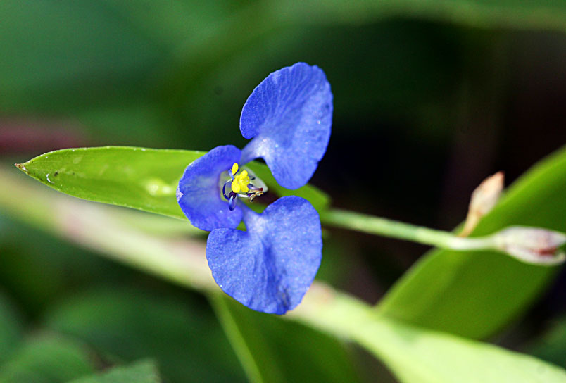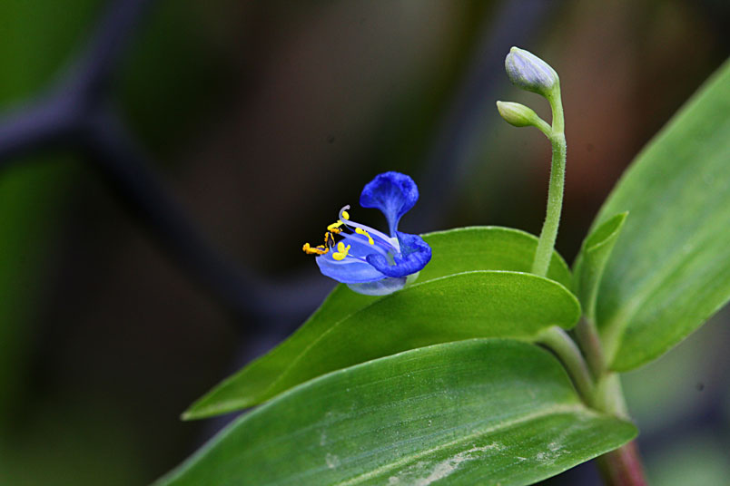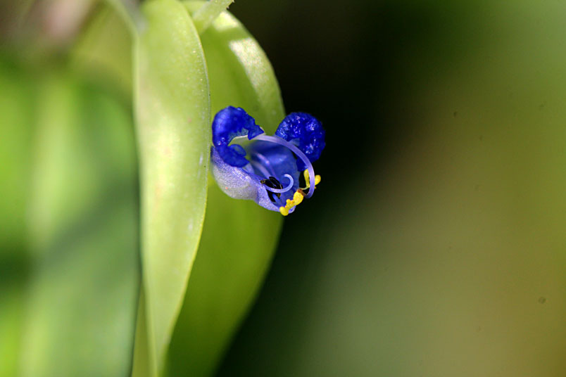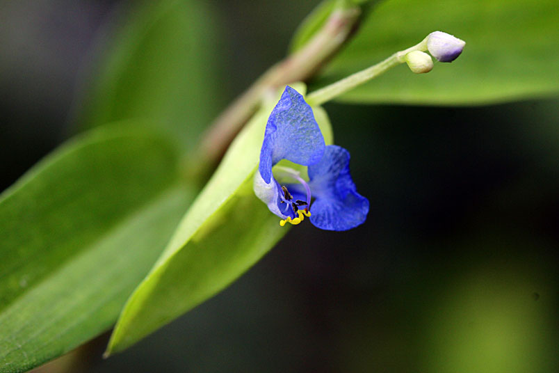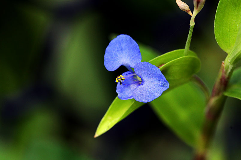花,腋生;苞片披針形,光滑,邊緣分離;花瓣藍色,兩側瓣具爪
