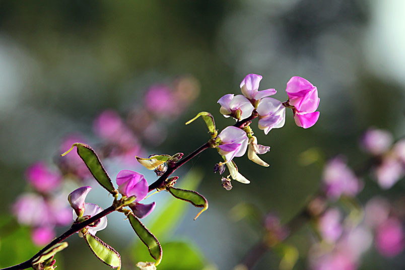 扁豆花在明媚的陽光下,輕輕盈盈,好像一隻隻美麗的蝴蝶在微