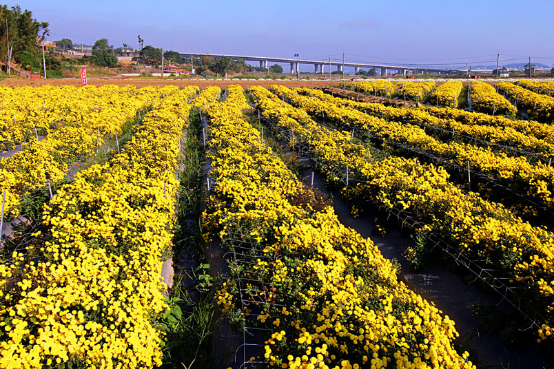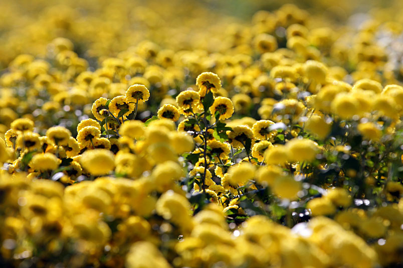 歲末年終,苗栗縣銅鑼鄉九湖村的杭菊,在溫暖的冬陽裡燦爛地