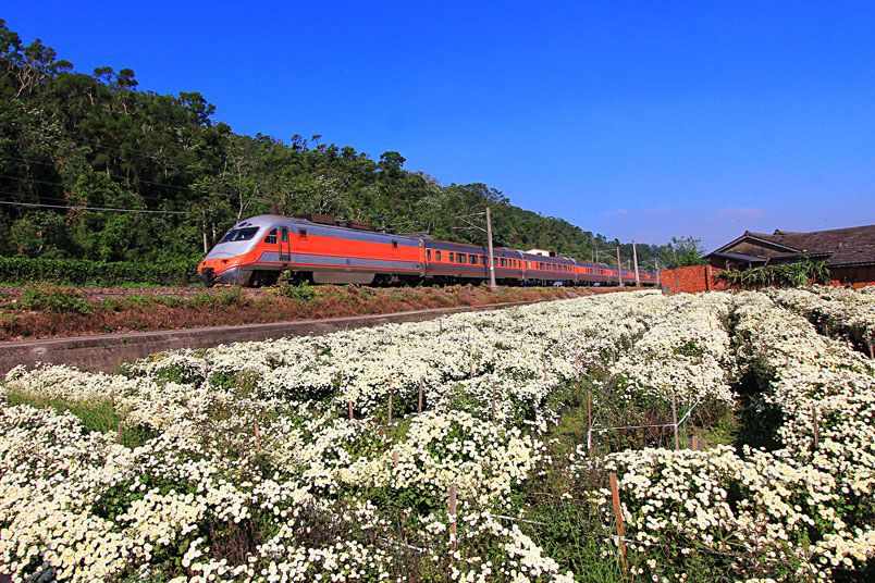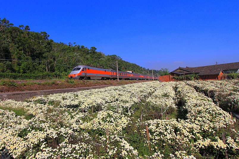 除了賞杭菊,在杭菊田中追火車也是很有趣的,吸引大批好攝客
