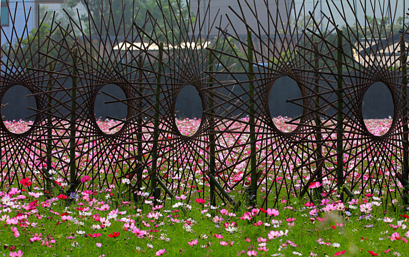 暋盛老師製作長25公尺寬8米高約2.8公尺的「花彩洋藝-花田、花現
