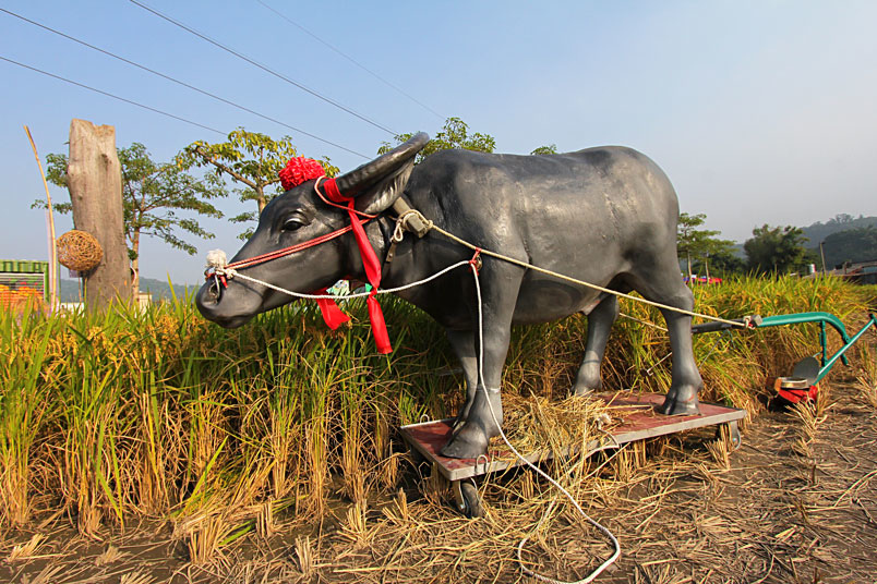 布置,但分別表現耕牛或古老的候車站等意象,不顯突兀,反與當地